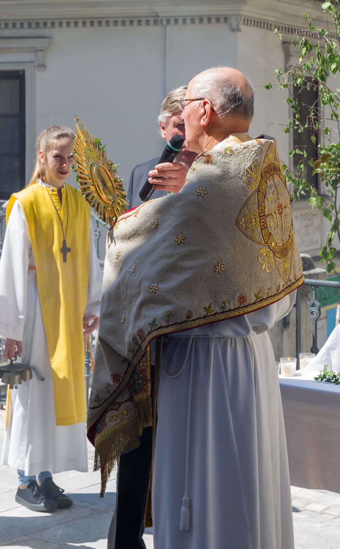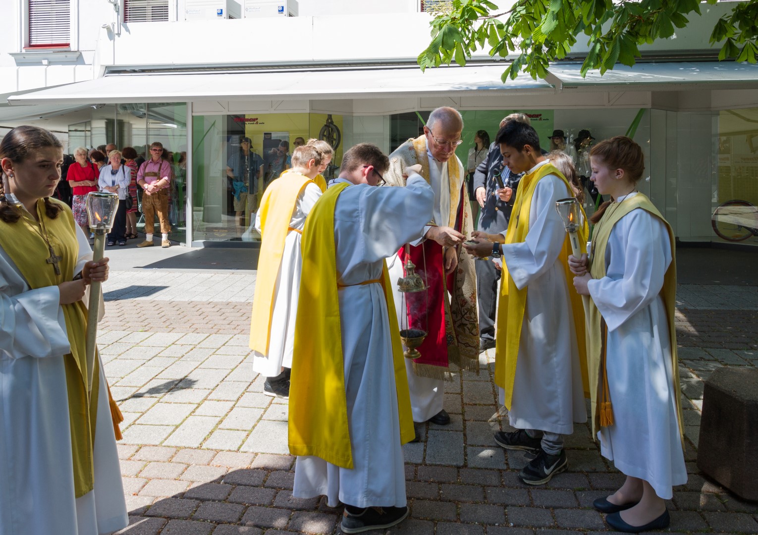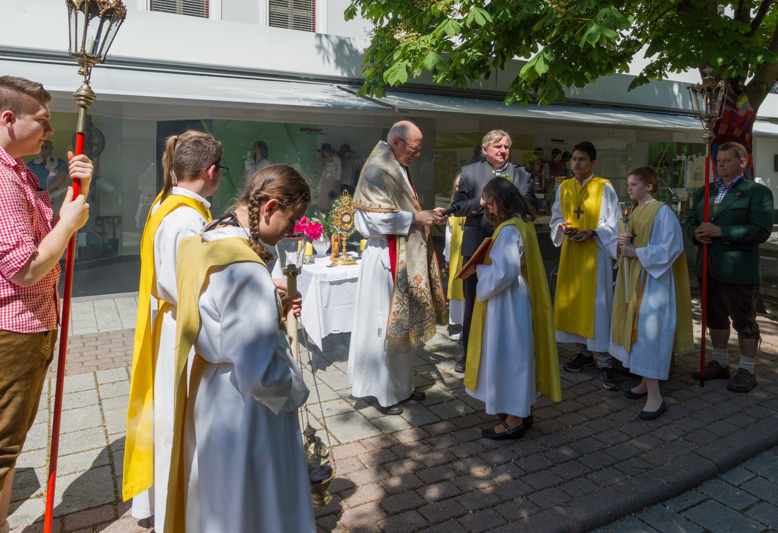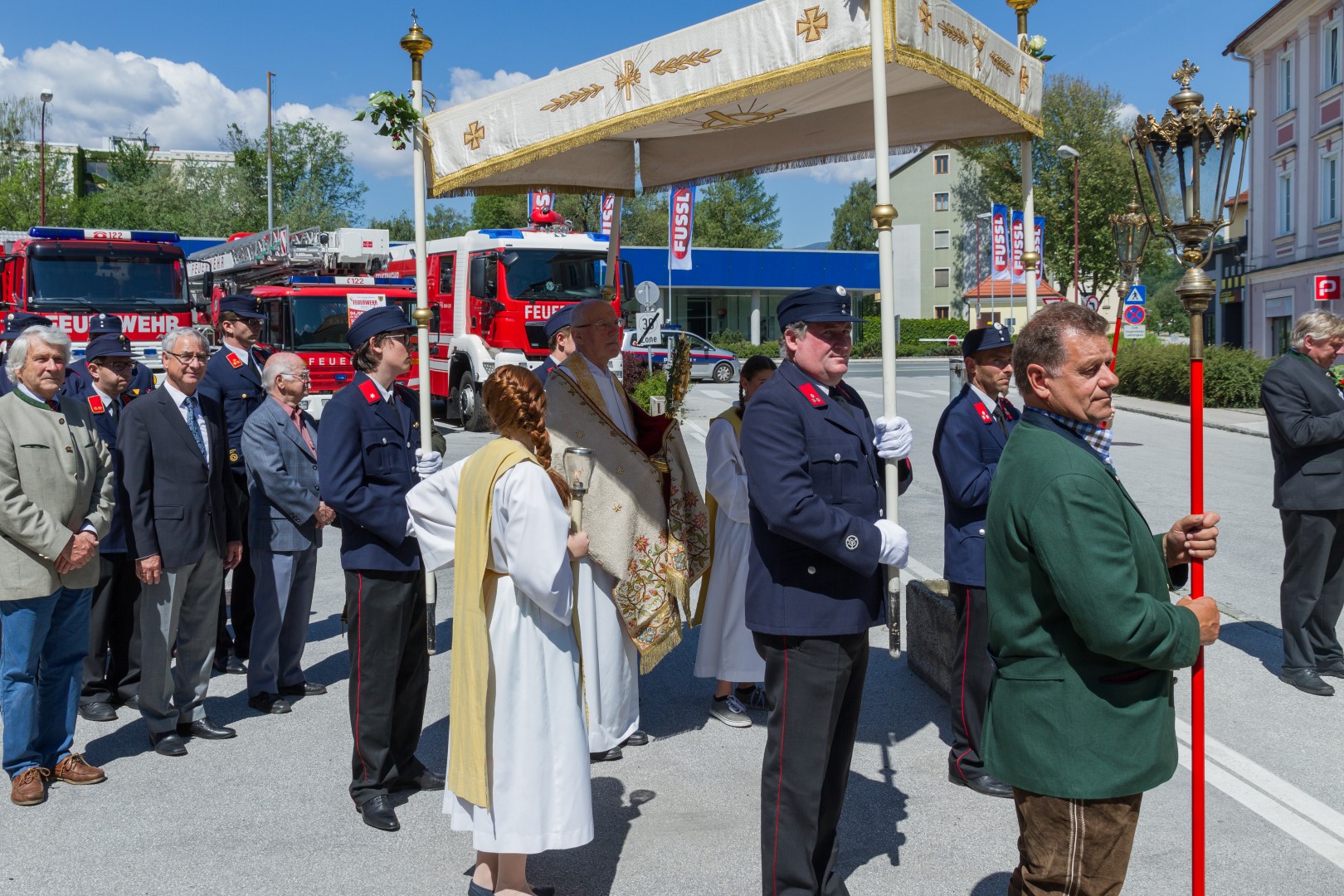 Der Messfeier folgte bei herrlichem Frühlingswetter die Fronleichnamsprozession durch die Stadt, musikalisch gestaltet von der Stadtkapelle Wolfsberg, mit insgesamt fünf Altären, errichtet bei der Rektoratskirche Mariä Himmelfahrt, dem Feuerwehr-Rüsthaus, am Offnerplatzl, am Hohen Platz bei der Mariensäule sowie vor dem Hauptportal der Markuskirche, bei welchen Dechant Hofer das jeweils vorgesehene Evangelium verkündete und Fürbitten gesprochen wurden. Ihren Abschluss fand die Prozession schließlich bei letztgenanntem Altar vor der Markuskirche mit einem feierlichen Segen und dem Te Deum.
