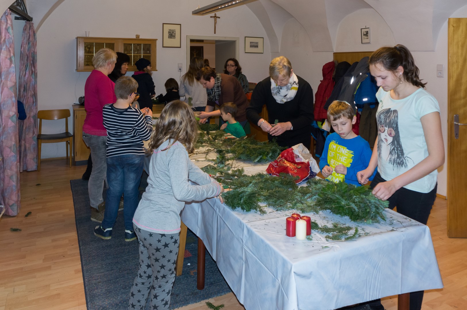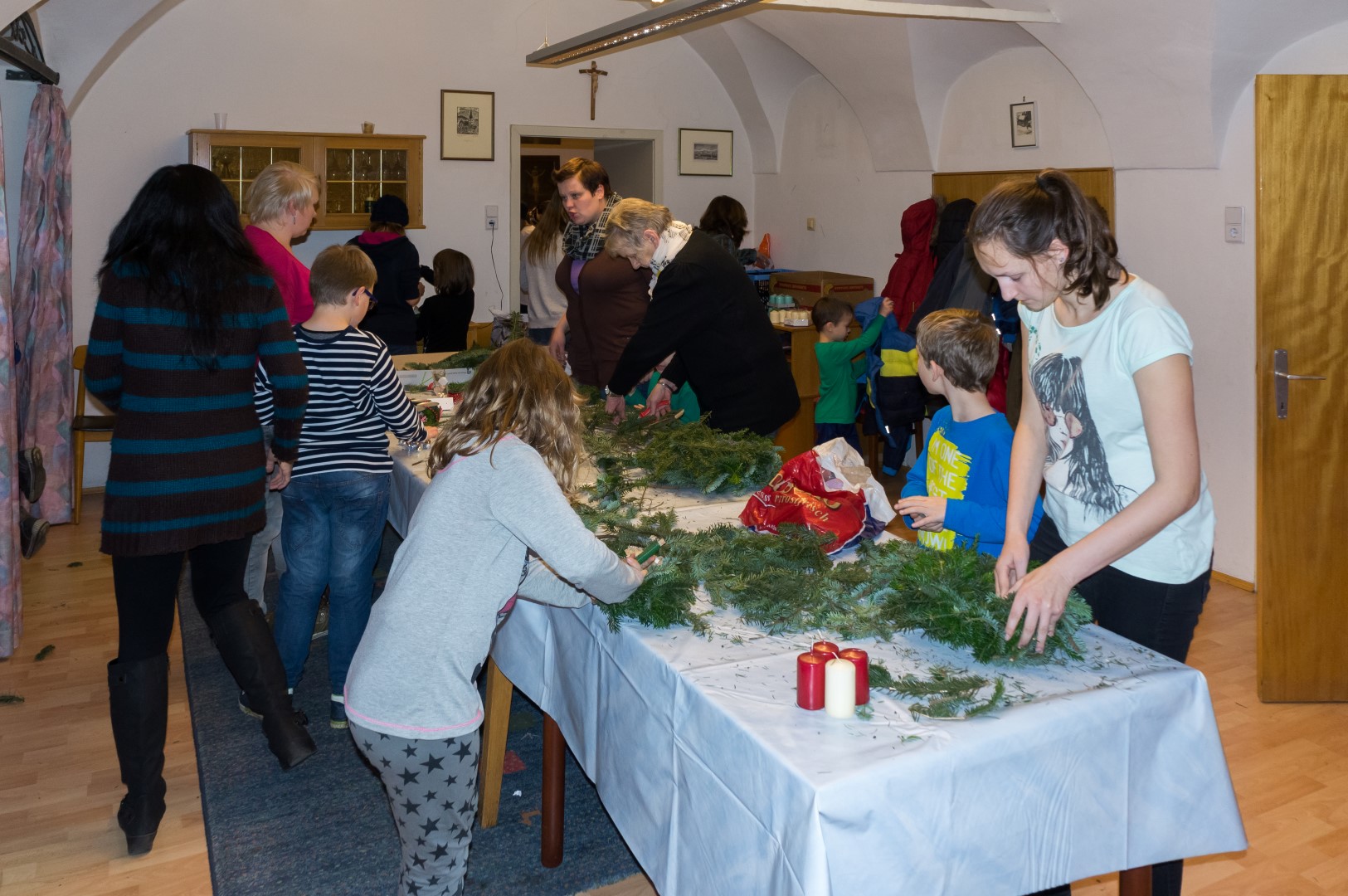 Adventkranzbinden in den Räumlichkeiten des Pfarrhofs