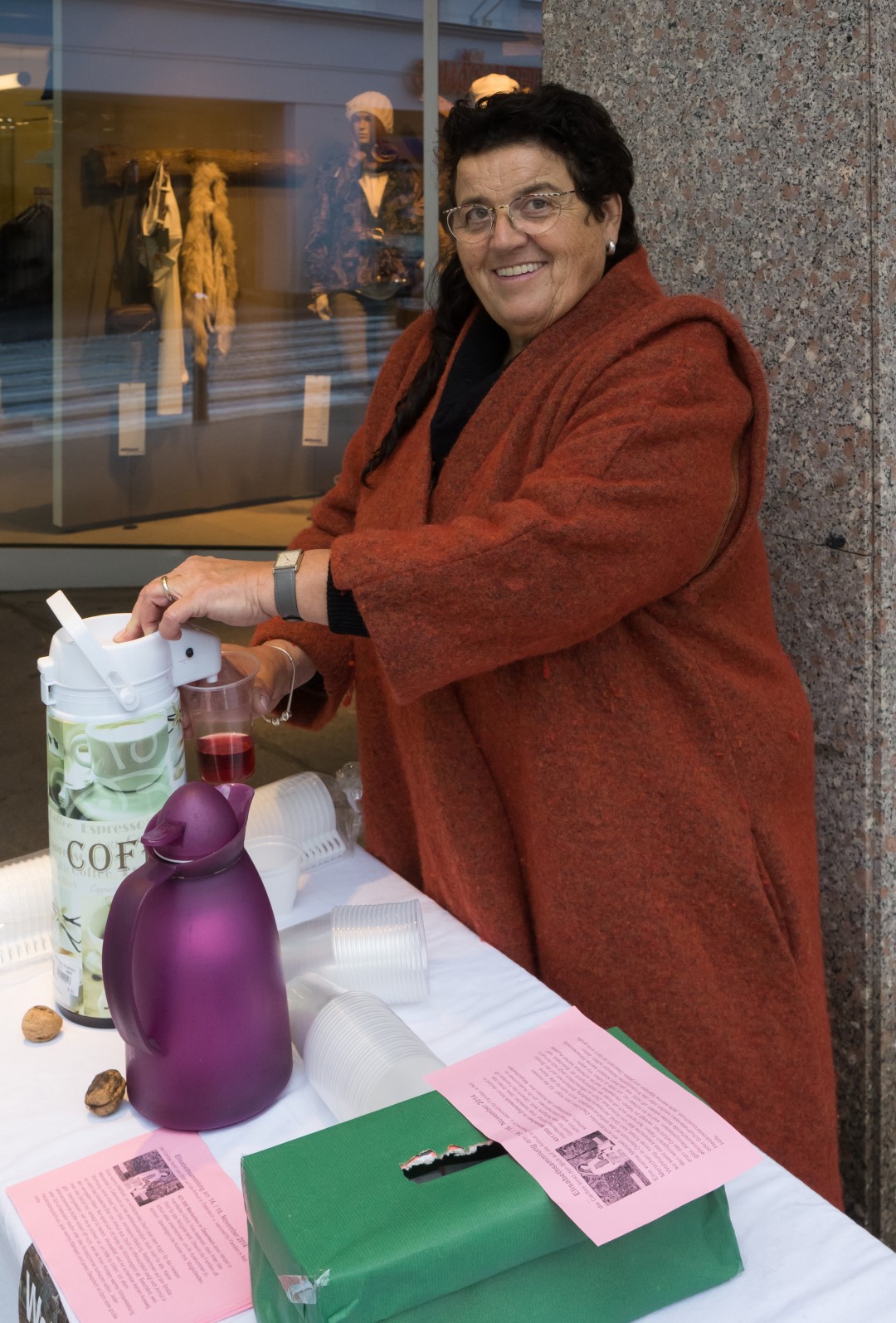 Die Passanten können kurz innehalten und bei einem netten Gespräch Früchtetee sowie Brot genießen (© Herr Mag. Bernhard Wagner).