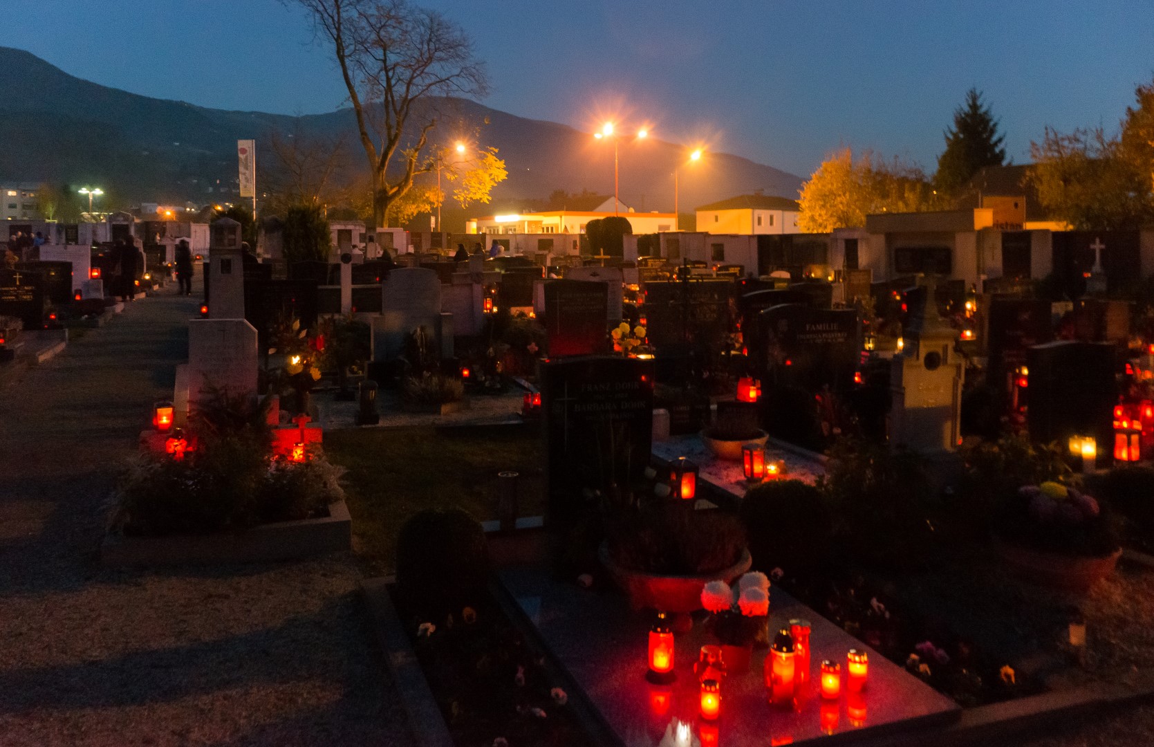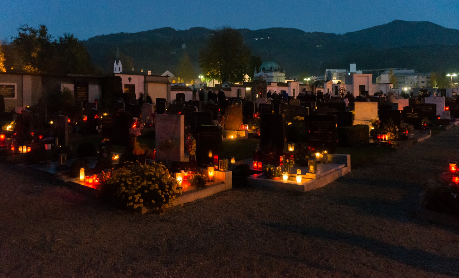 … und nach Südosten. Immer wieder eindrucksvoll die vielen Lichter an den Gräbern unserer Verstorbenen (© Herr Mag. Bernhard Wagner).