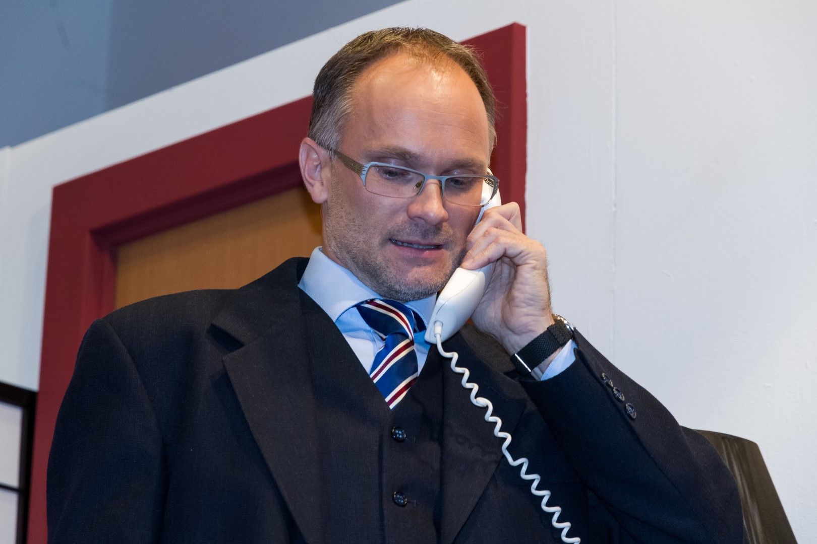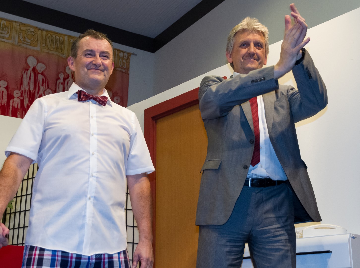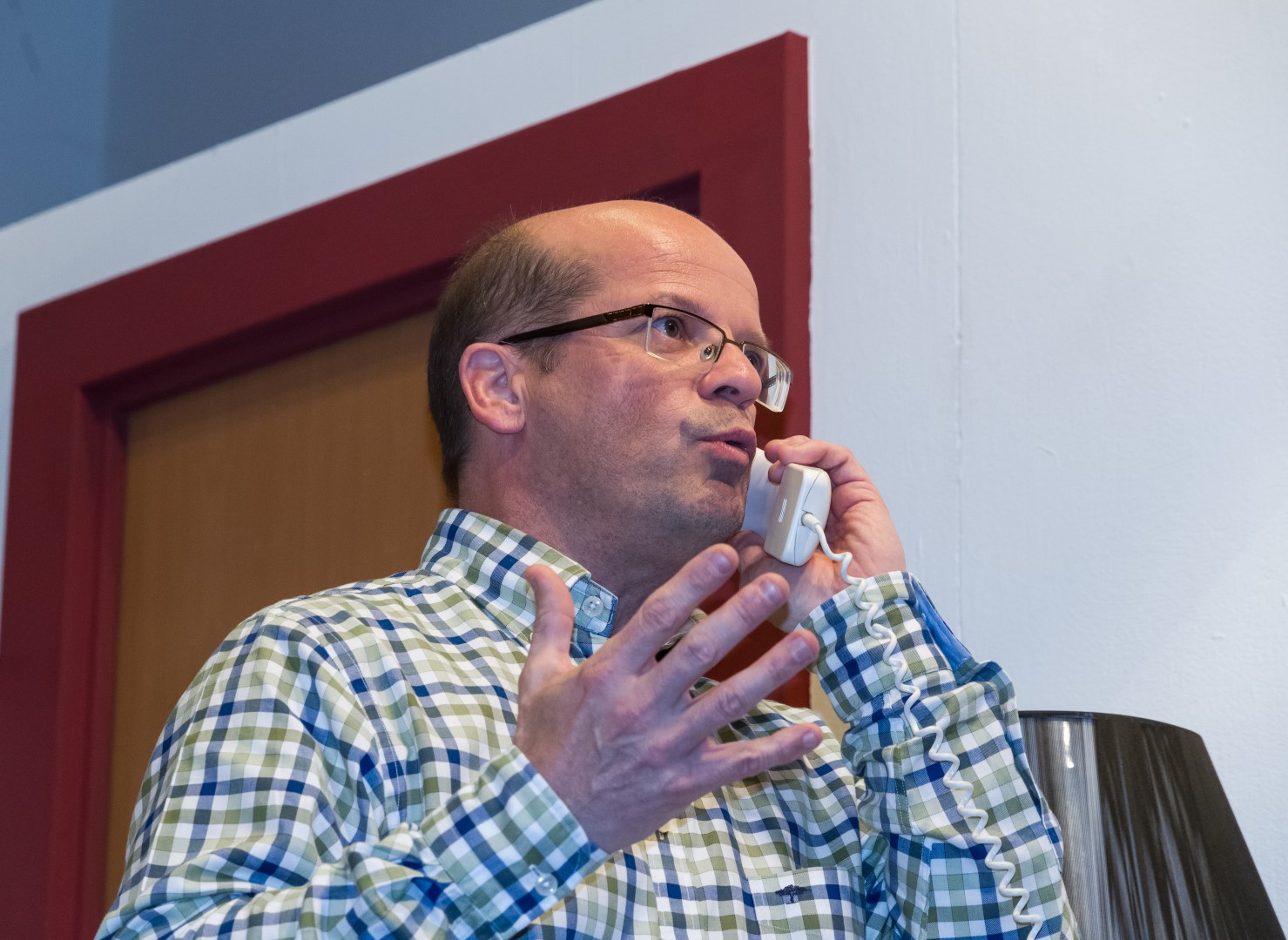 Obmann der Markusbühne, Herr Heinz Helmut Luger, bei der Begrüßung der Gäste (© Herr Mag. Bernhard Wagner).