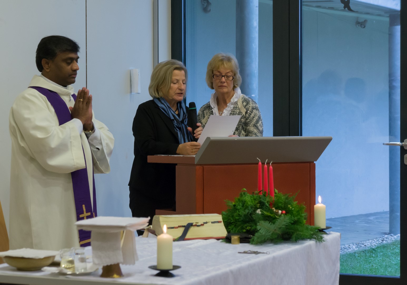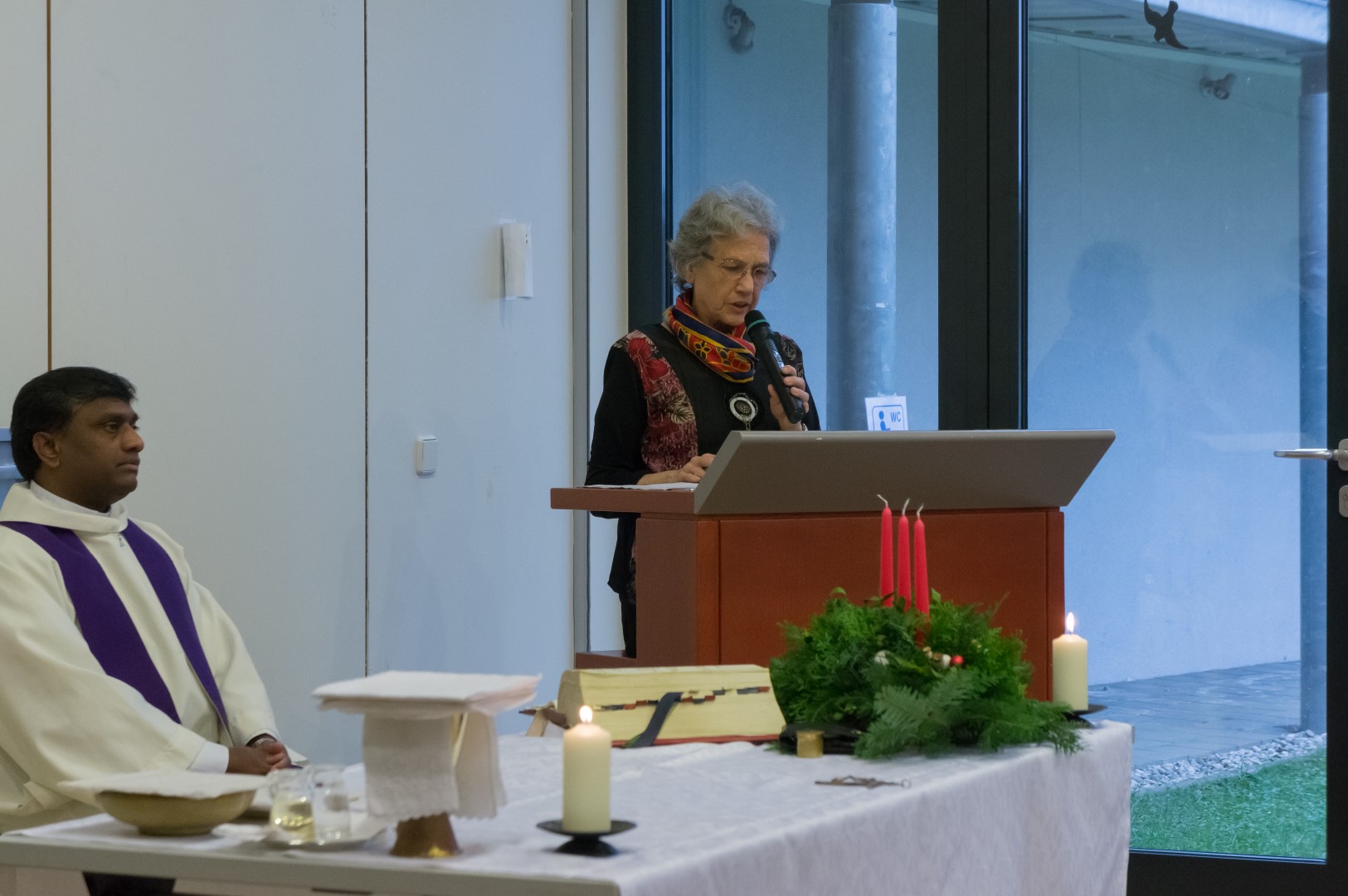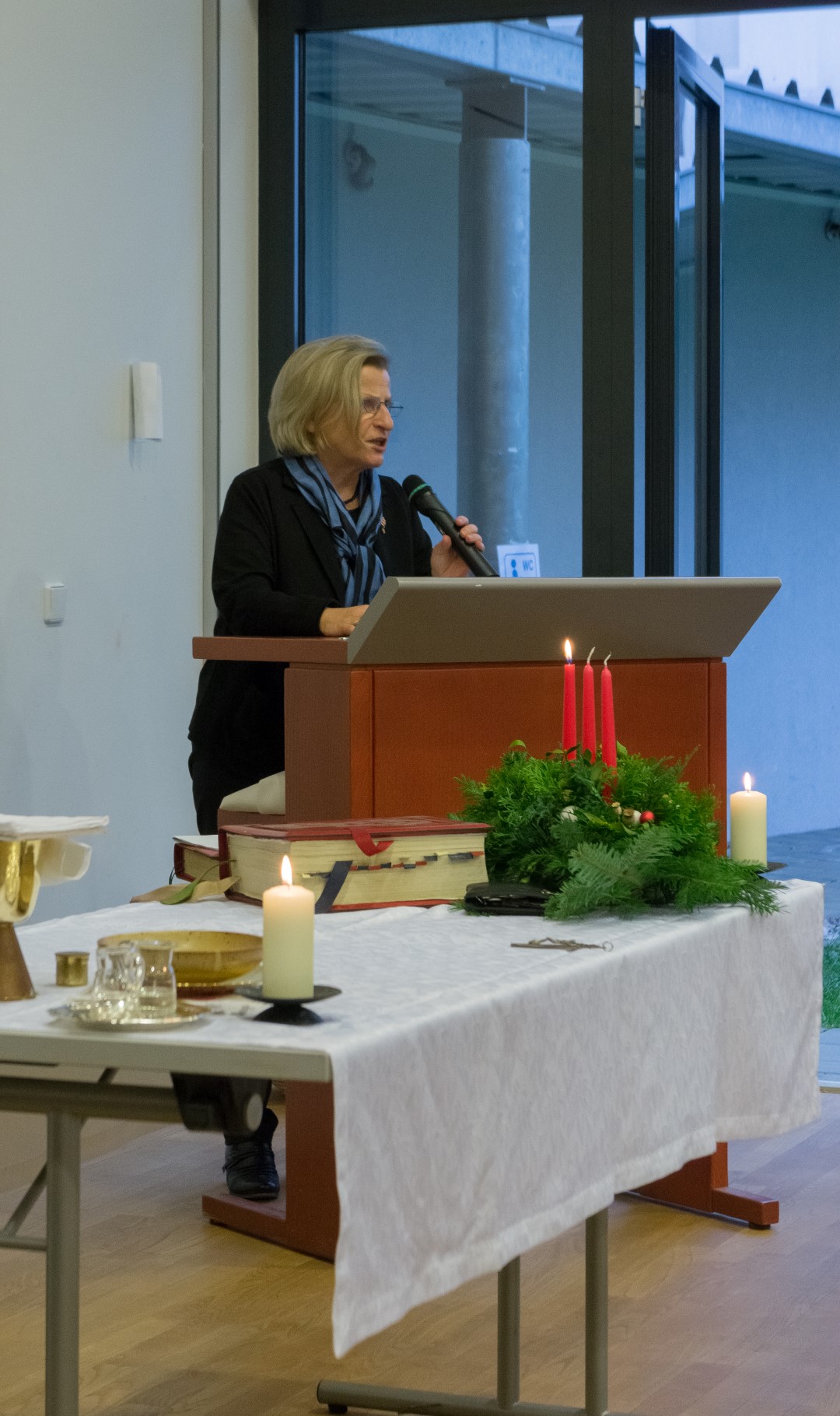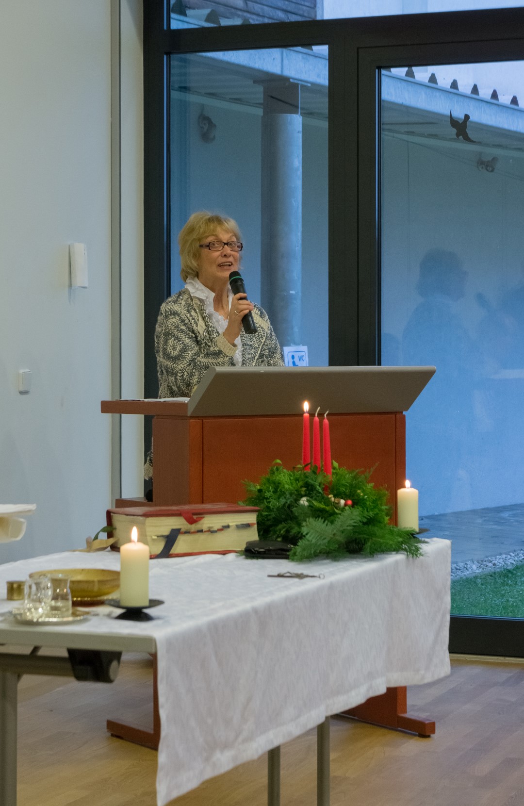 Die Leiterin des Sozial-Arbeitskreises, Frau Hermine Jennewein, richtet Worte an die Anwesenden (© Herr Mag. Bernhard Wagner).