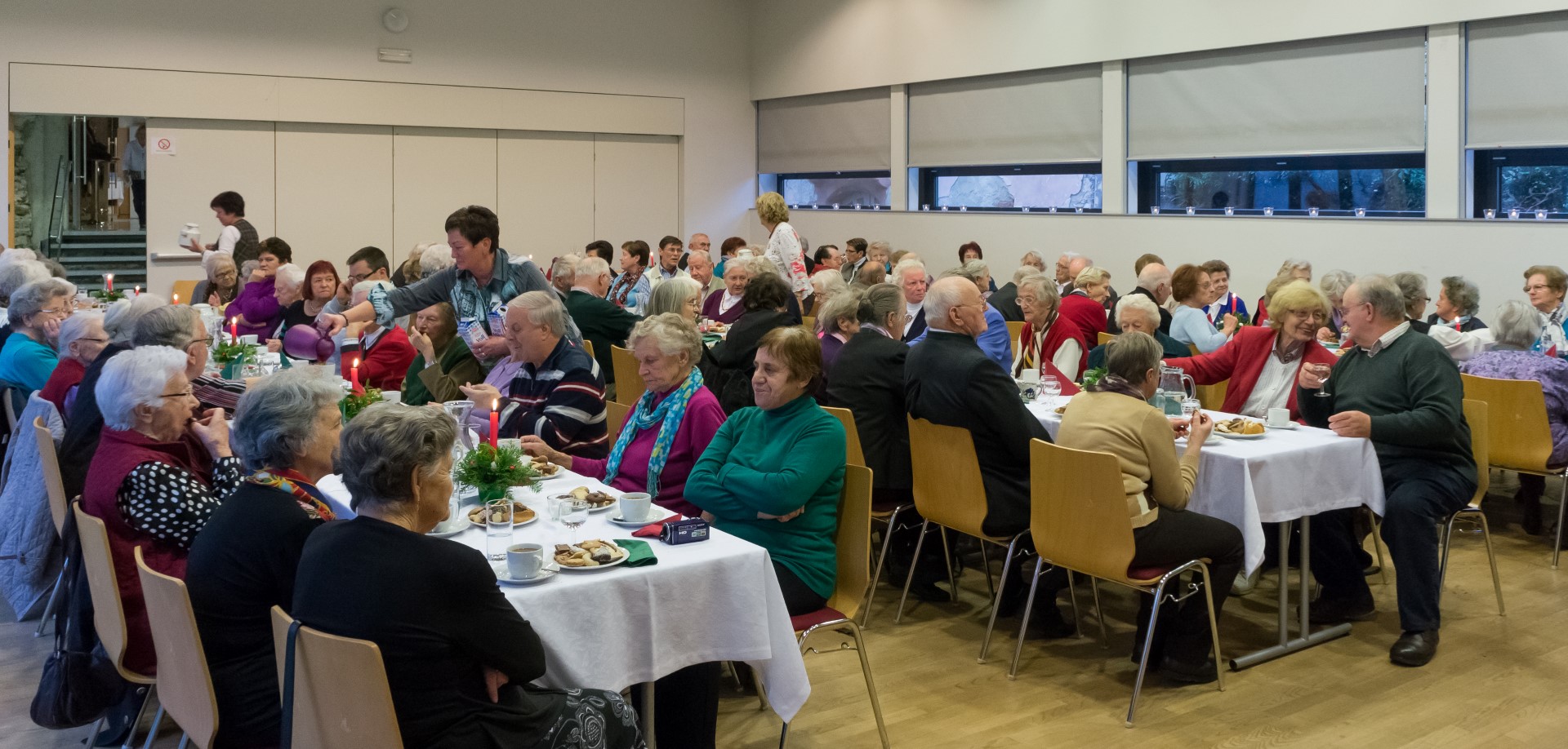 Blick in den Markussaal zu den Seniorinnen und Senioren (© Herr Mag. Bernhard Wagner).