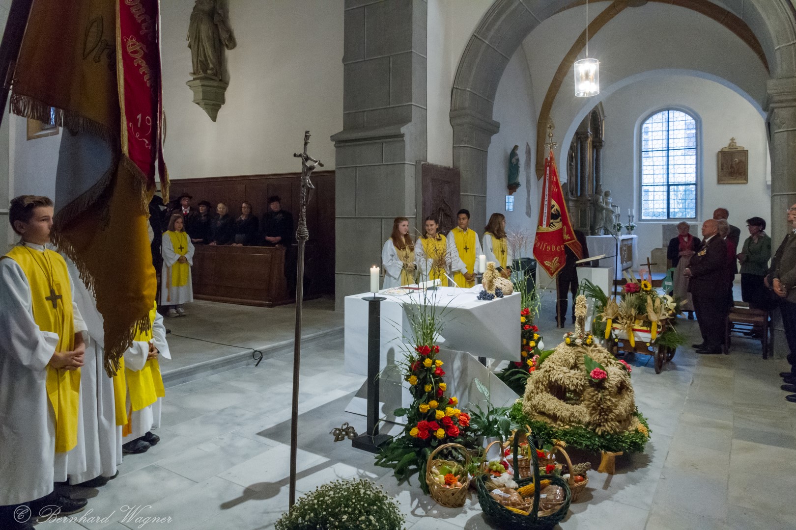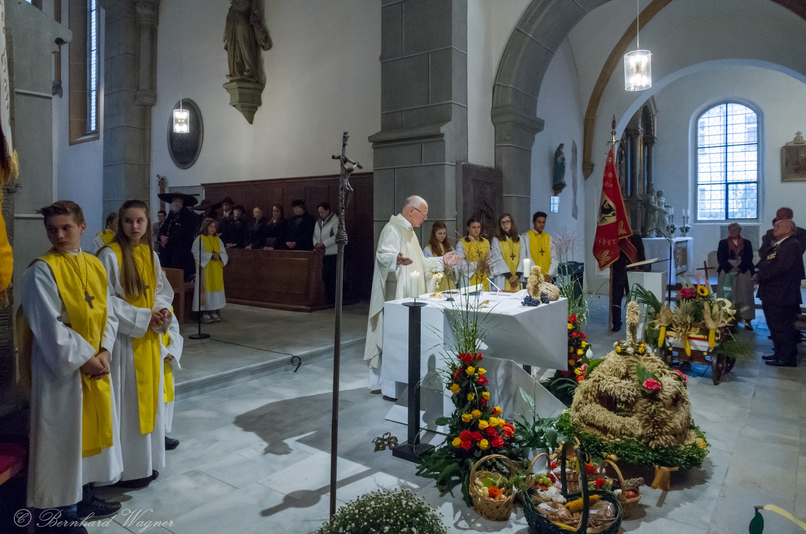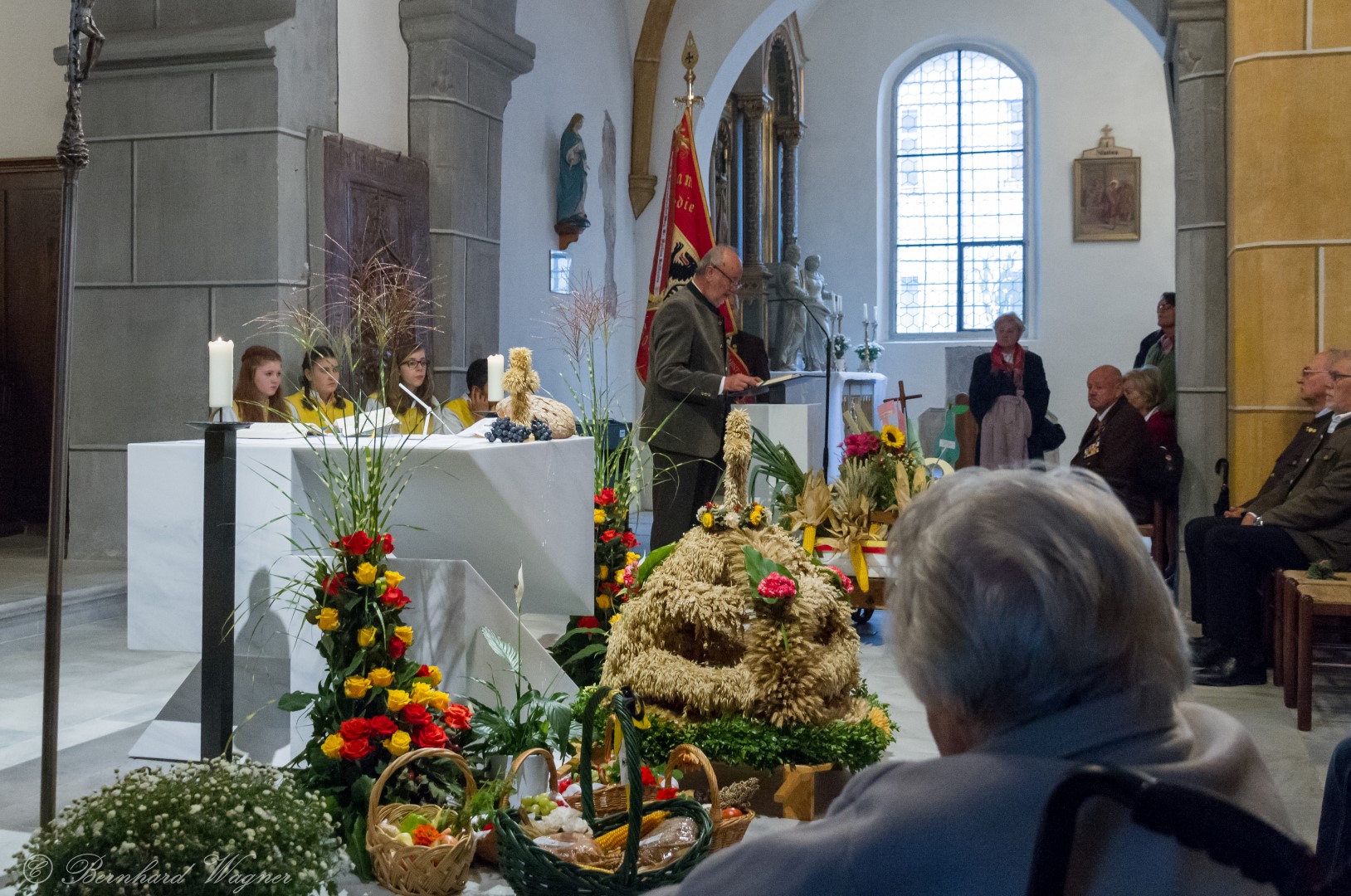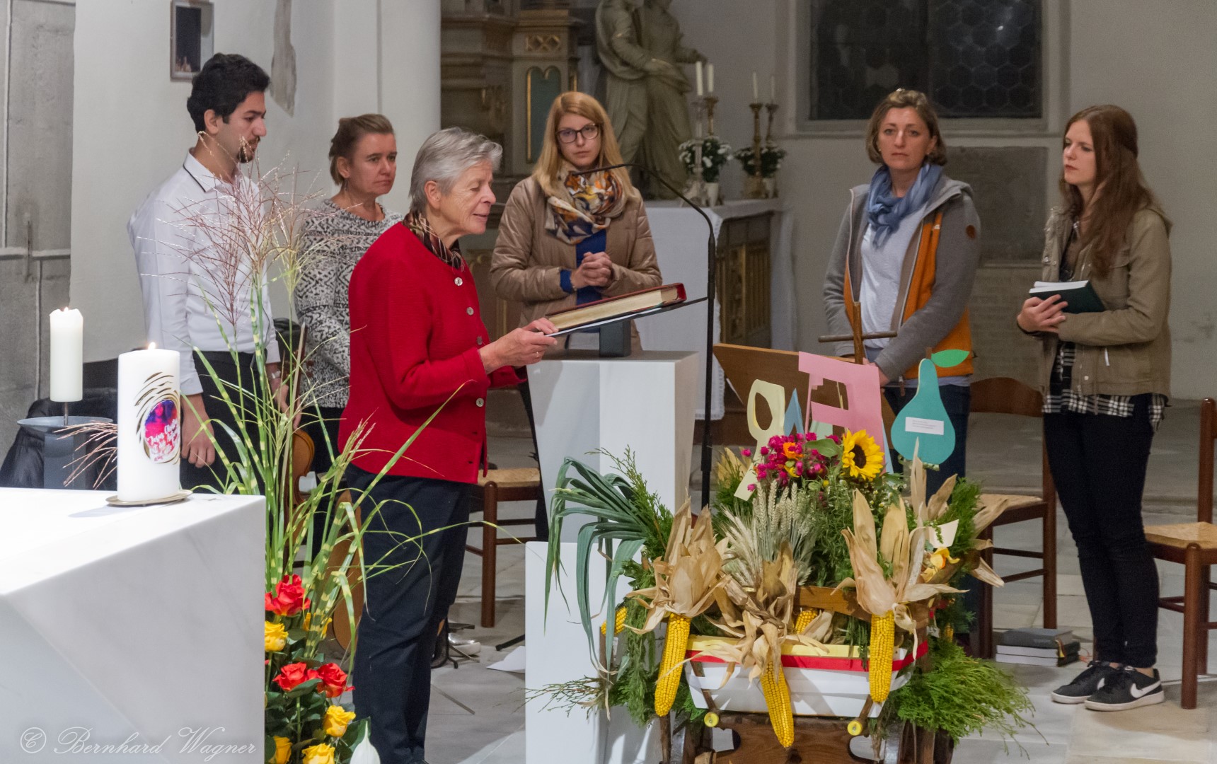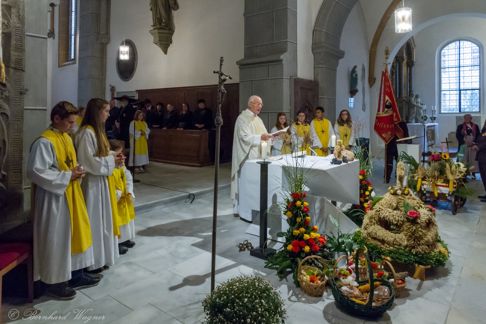 Am ersten Sonntag im Monat, den 2. Oktober, wurde in der Pfarre Wolfsberg das Erntedankfest gefeiert um für die Ernte des Jahres Dank zu sagen. Die Feier sollte eigentlich wie jedes Jahr um 10.00 Uhr am Weiherplatz beginnen wo traditionell die Erntegaben gesegnet werden und schließlich ein Festzug über den Hohen Platz zur Markuskirche stattfindet. Aufgrund regnerischen Wetters musste dieser Teil leider entfallen weshalb die gesamte Feier im Rahmen des Erntedankgottesdienstes, zelebriert von Dechant Mag. Engelbert Hofer, in der Markuskirche stattfand. Im Zuge der Segnung der Erntegaben hielten die anwesenden Ministranten einen ursprünglich für den Weiherplatz vorgesehenen, schönen Textvortrag bei welchem zu jedem aus Papier gefertigten Buchstaben des Wortes Erntedank ein hierzu passender, kurzer Text gelesen wurde.