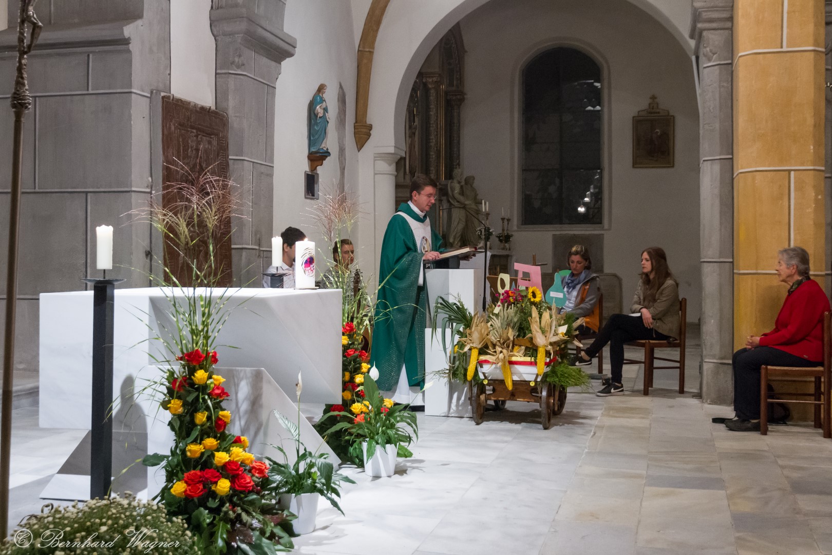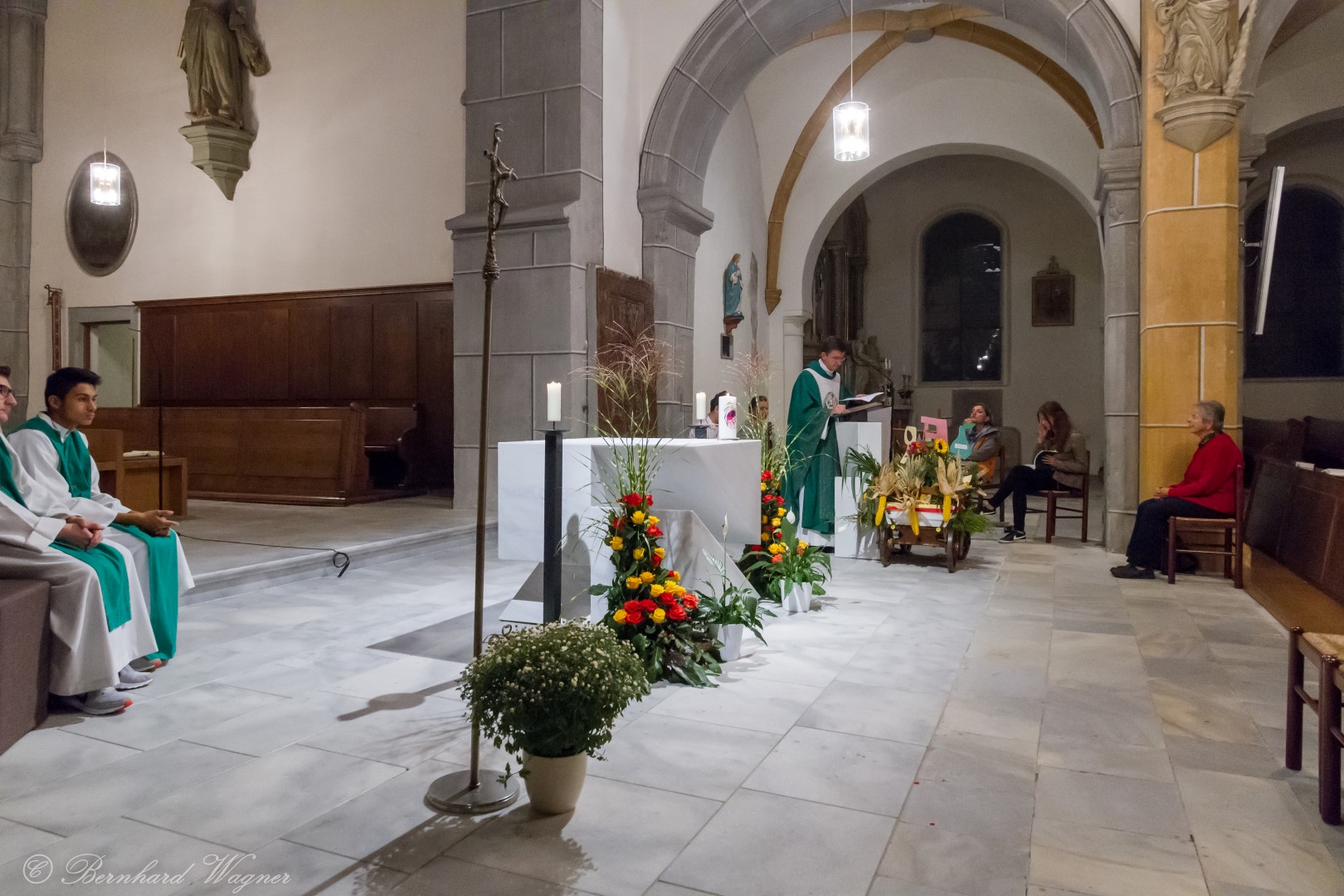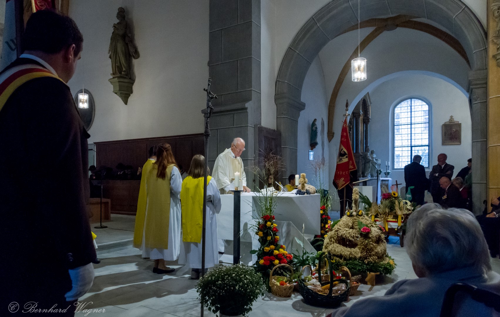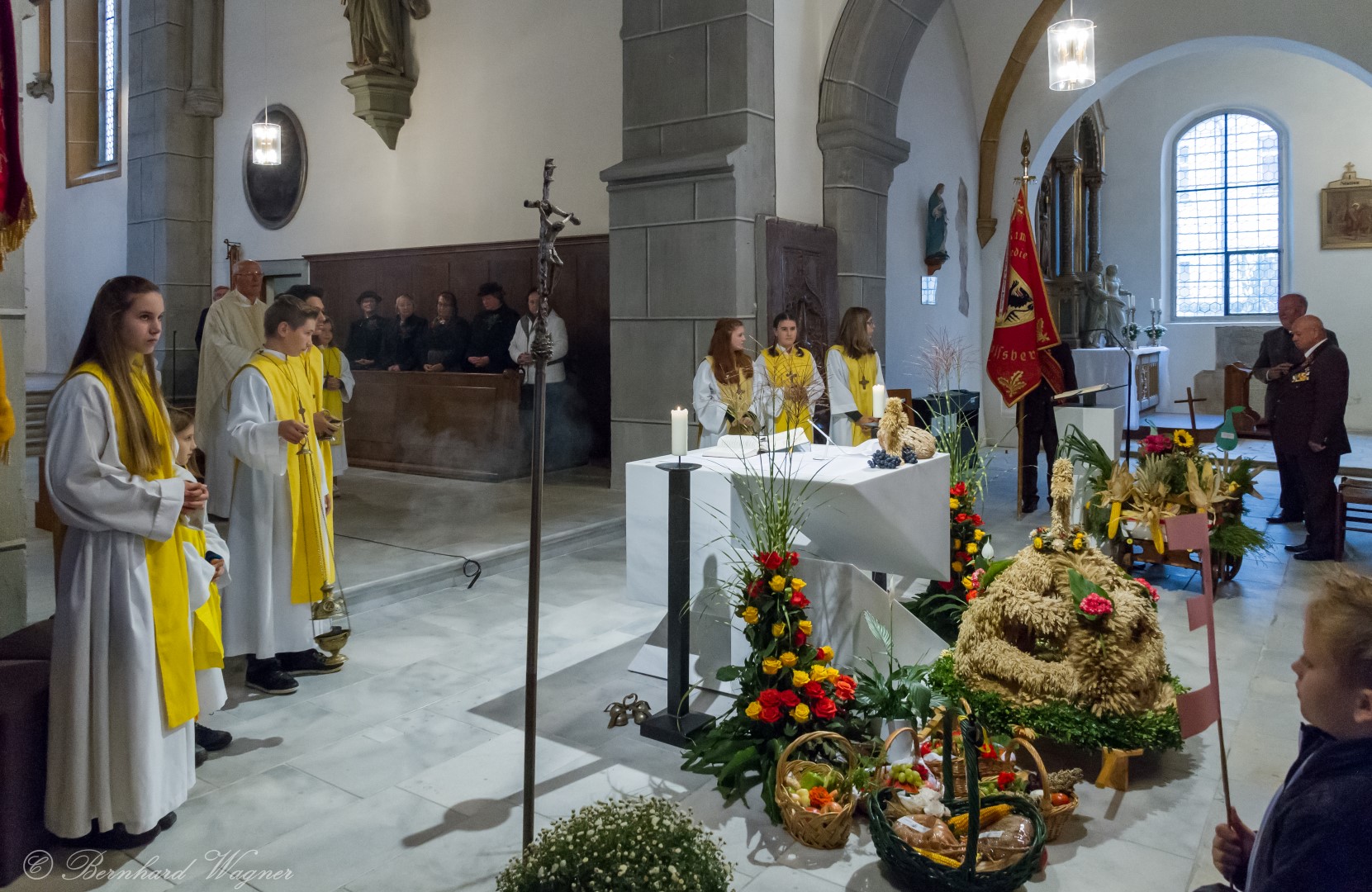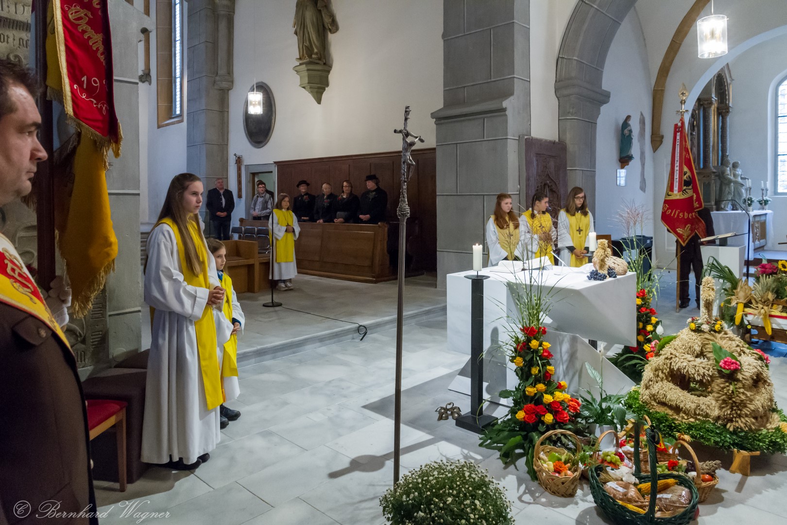 Am ersten Sonntag im Monat, den 2. Oktober, wurde in der Pfarre Wolfsberg das Erntedankfest gefeiert um für die Ernte des Jahres Dank zu sagen. Die Feier sollte eigentlich wie jedes Jahr um 10.00 Uhr am Weiherplatz beginnen wo traditionell die Erntegaben gesegnet werden und schließlich ein Festzug über den Hohen Platz zur Markuskirche stattfindet. Aufgrund regnerischen Wetters musste dieser Teil leider entfallen weshalb die gesamte Feier im Rahmen des Erntedankgottesdienstes, zelebriert von Dechant Mag. Engelbert Hofer, in der Markuskirche stattfand. Im Zuge der Segnung der Erntegaben hielten die anwesenden Ministranten einen ursprünglich für den Weiherplatz vorgesehenen, schönen Textvortrag bei welchem zu jedem aus Papier gefertigten Buchstaben des Wortes Erntedank ein hierzu passender, kurzer Text gelesen wurde.