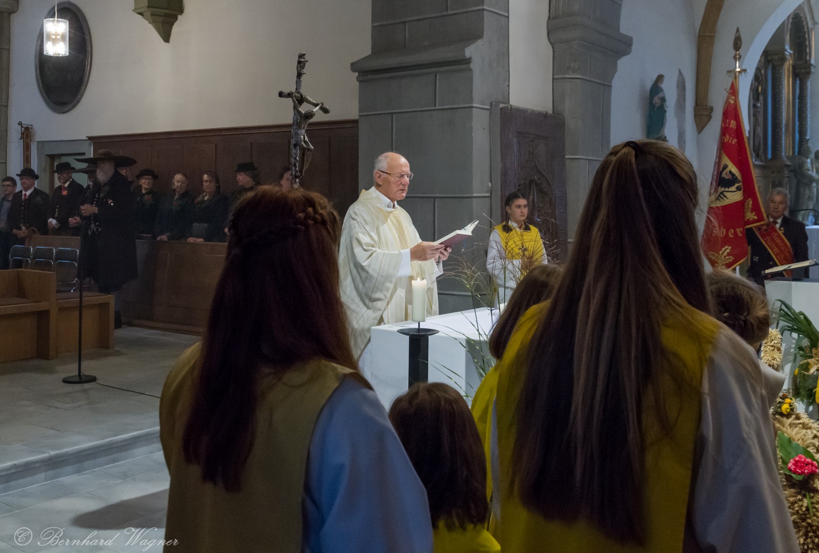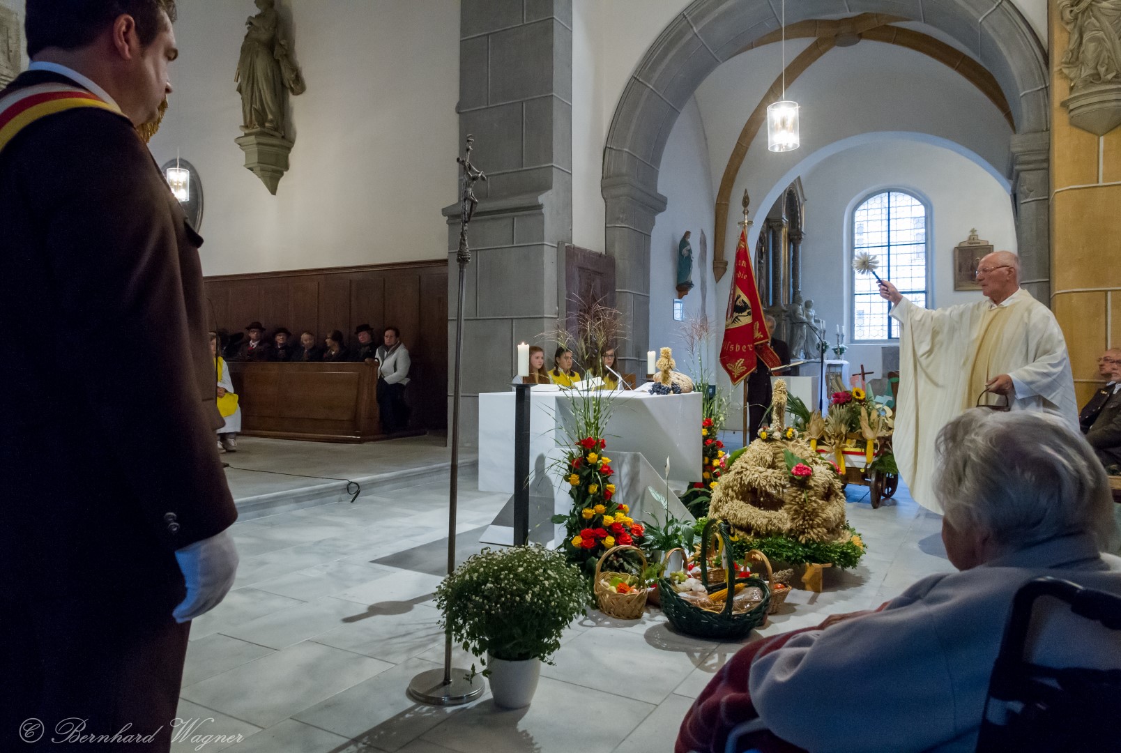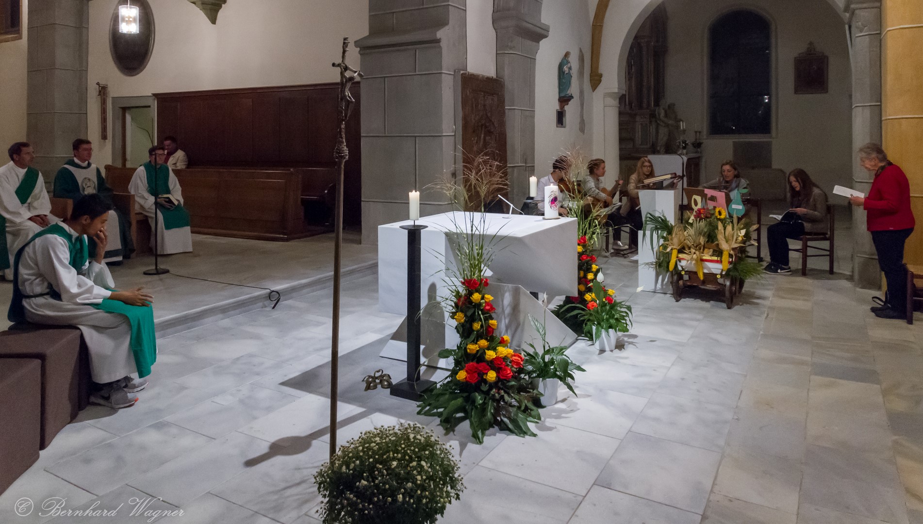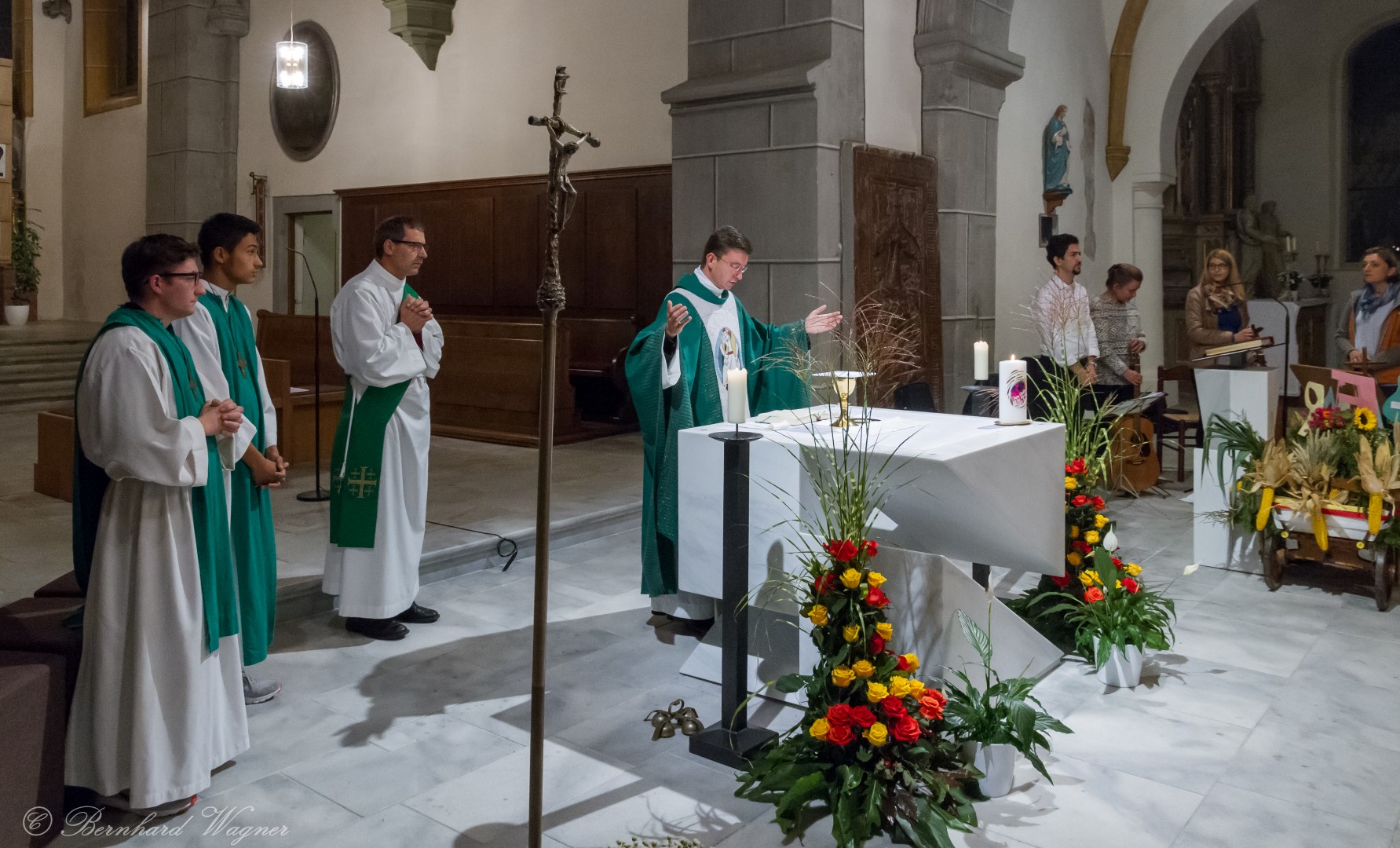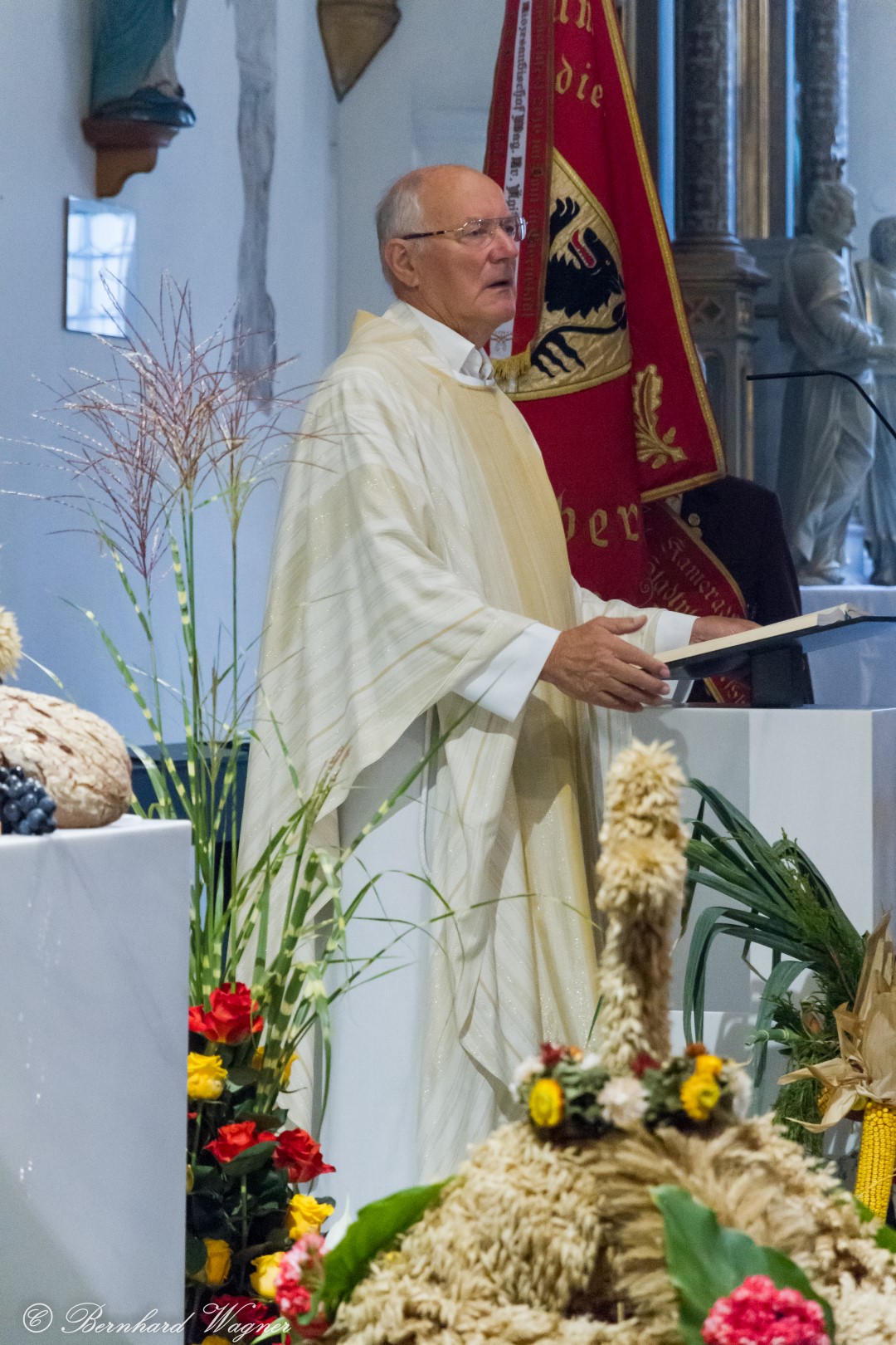 Am ersten Sonntag im Monat, den 2. Oktober, wurde in der Pfarre Wolfsberg das Erntedankfest gefeiert um für die Ernte des Jahres Dank zu sagen. Die Feier sollte eigentlich wie jedes Jahr um 10.00 Uhr am Weiherplatz beginnen wo traditionell die Erntegaben gesegnet werden und schließlich ein Festzug über den Hohen Platz zur Markuskirche stattfindet. Aufgrund regnerischen Wetters musste dieser Teil leider entfallen weshalb die gesamte Feier im Rahmen des Erntedankgottesdienstes, zelebriert von Dechant Mag. Engelbert Hofer, in der Markuskirche stattfand. Im Zuge der Segnung der Erntegaben hielten die anwesenden Ministranten einen ursprünglich für den Weiherplatz vorgesehenen, schönen Textvortrag bei welchem zu jedem aus Papier gefertigten Buchstaben des Wortes Erntedank ein hierzu passender, kurzer Text gelesen wurde.