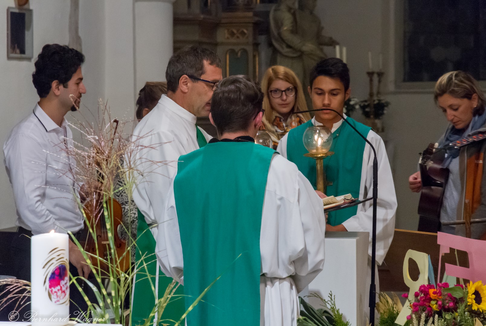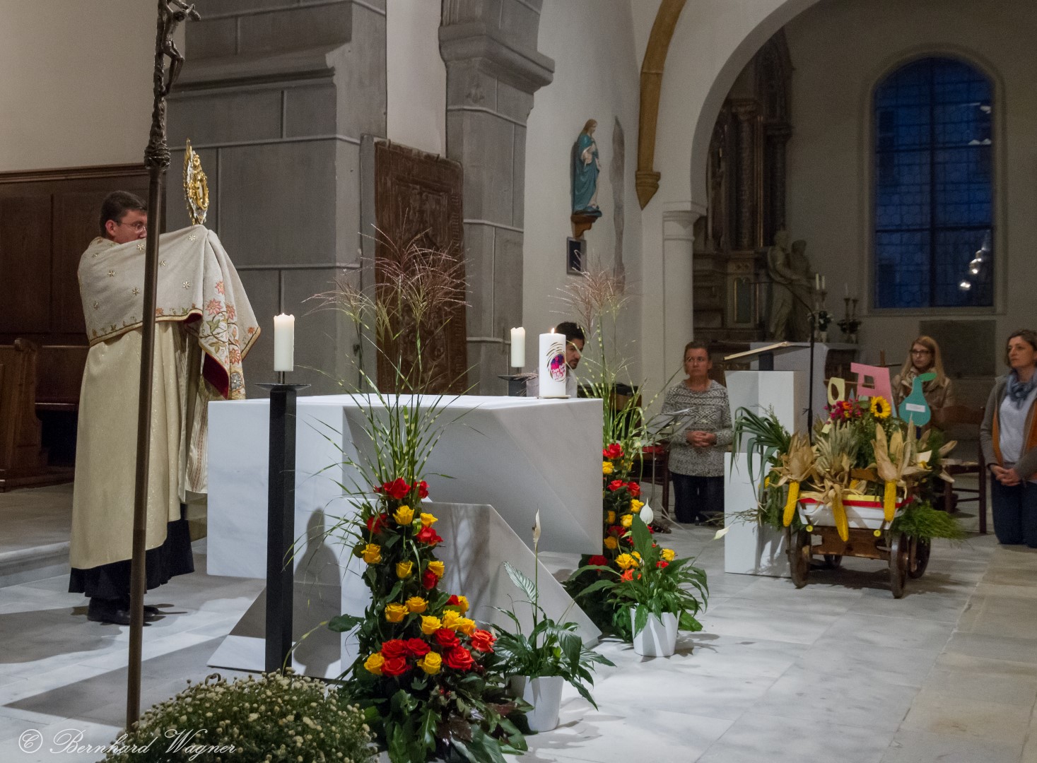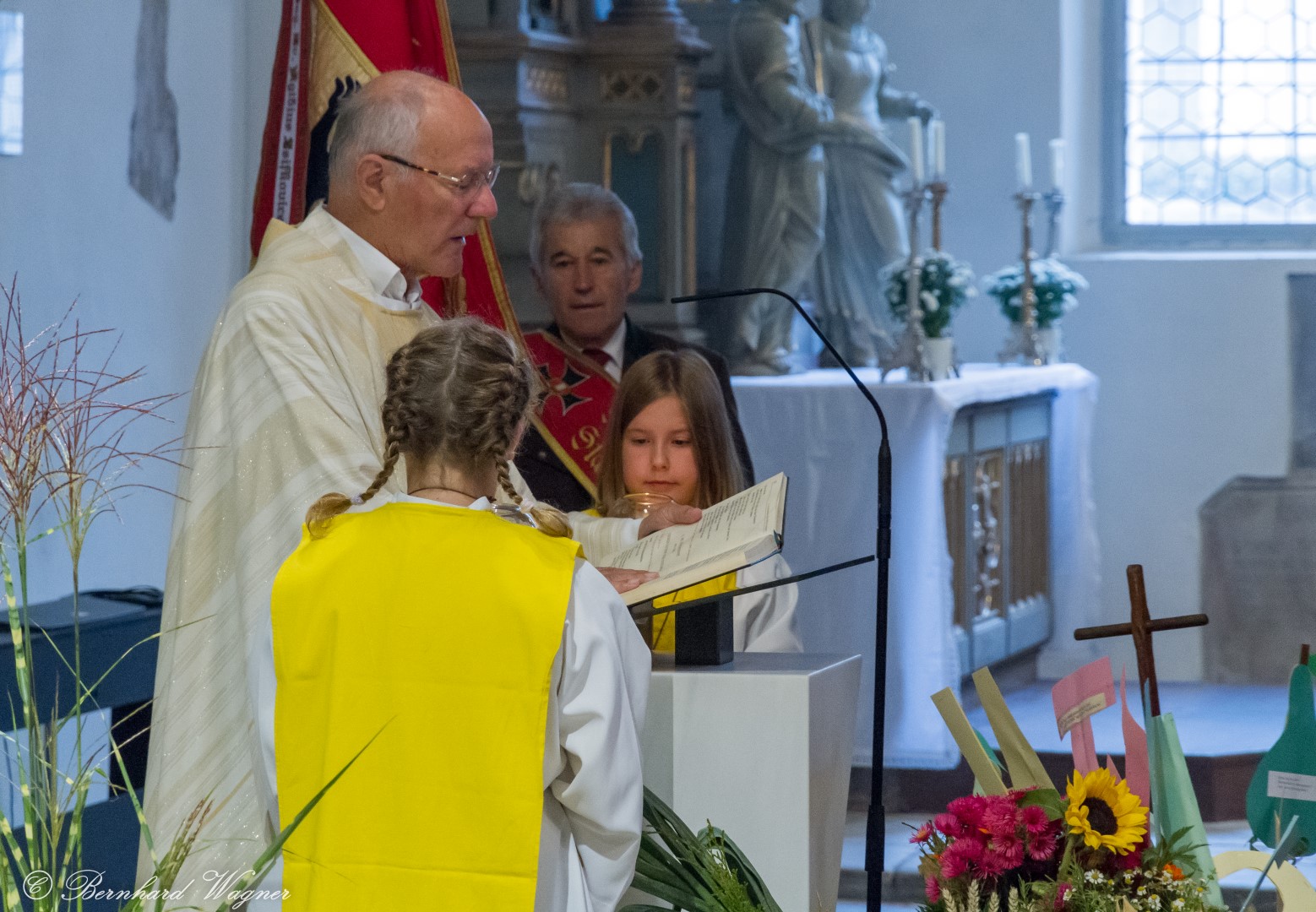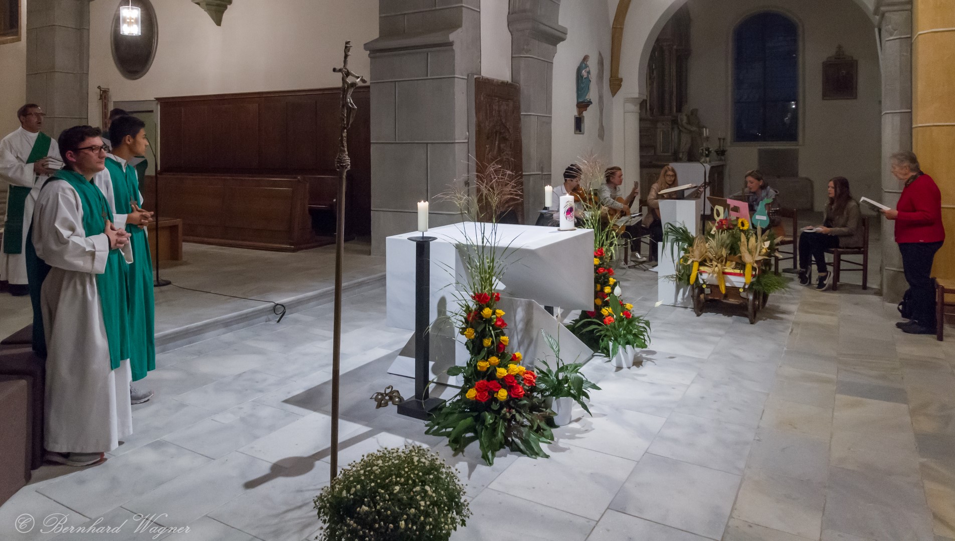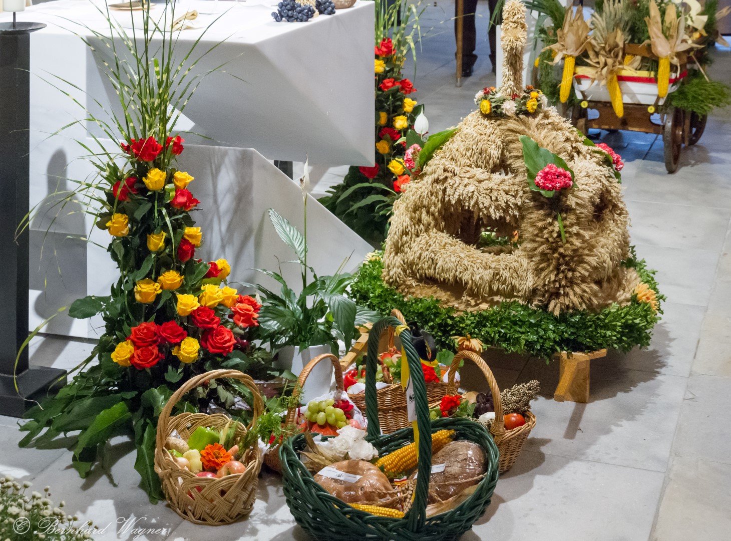 Am ersten Sonntag im Monat, den 2. Oktober, wurde in der Pfarre Wolfsberg das Erntedankfest gefeiert um für die Ernte des Jahres Dank zu sagen. Die Feier sollte eigentlich wie jedes Jahr um 10.00 Uhr am Weiherplatz beginnen wo traditionell die Erntegaben gesegnet werden und schließlich ein Festzug über den Hohen Platz zur Markuskirche stattfindet. Aufgrund regnerischen Wetters musste dieser Teil leider entfallen weshalb die gesamte Feier im Rahmen des Erntedankgottesdienstes, zelebriert von Dechant Mag. Engelbert Hofer, in der Markuskirche stattfand. Im Zuge der Segnung der Erntegaben hielten die anwesenden Ministranten einen ursprünglich für den Weiherplatz vorgesehenen, schönen Textvortrag bei welchem zu jedem aus Papier gefertigten Buchstaben des Wortes Erntedank ein hierzu passender, kurzer Text gelesen wurde.