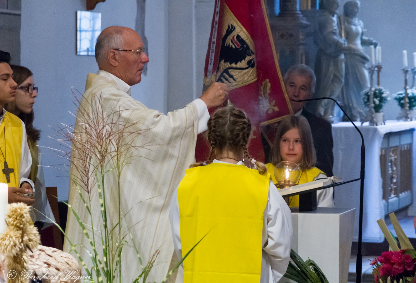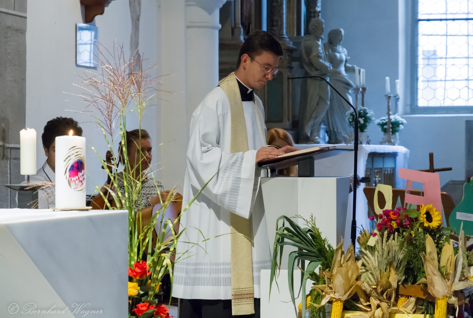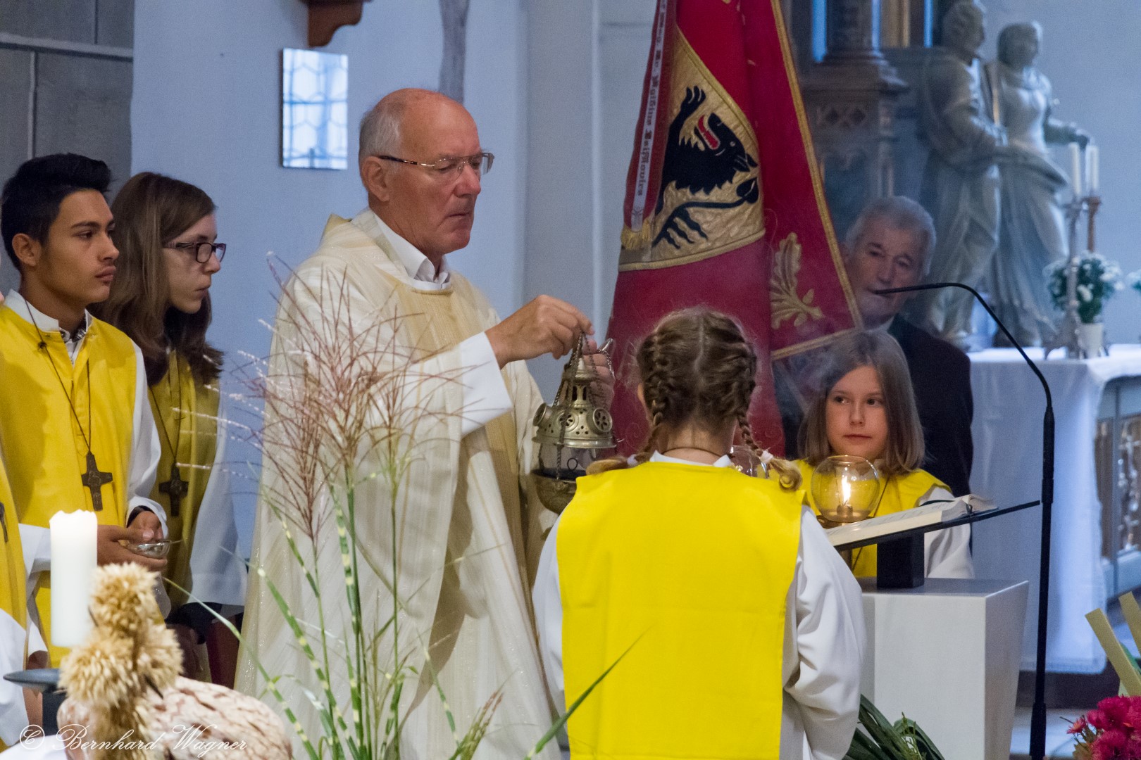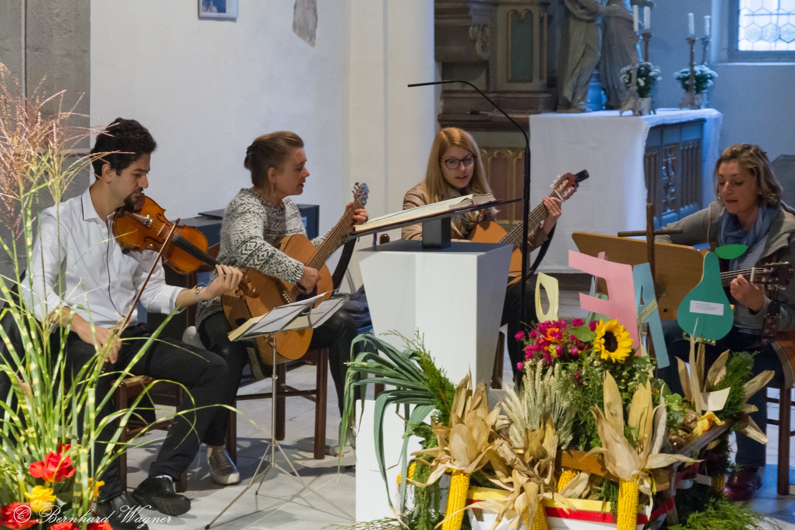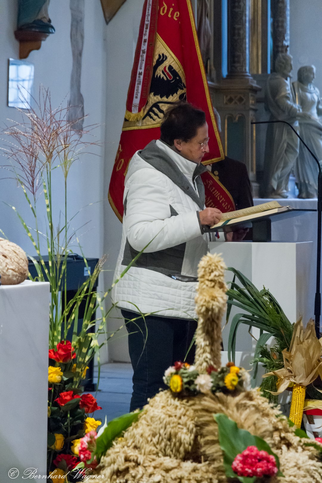 Am ersten Sonntag im Monat, den 2. Oktober, wurde in der Pfarre Wolfsberg das Erntedankfest gefeiert um für die Ernte des Jahres Dank zu sagen. Die Feier sollte eigentlich wie jedes Jahr um 10.00 Uhr am Weiherplatz beginnen wo traditionell die Erntegaben gesegnet werden und schließlich ein Festzug über den Hohen Platz zur Markuskirche stattfindet. Aufgrund regnerischen Wetters musste dieser Teil leider entfallen weshalb die gesamte Feier im Rahmen des Erntedankgottesdienstes, zelebriert von Dechant Mag. Engelbert Hofer, in der Markuskirche stattfand. Im Zuge der Segnung der Erntegaben hielten die anwesenden Ministranten einen ursprünglich für den Weiherplatz vorgesehenen, schönen Textvortrag bei welchem zu jedem aus Papier gefertigten Buchstaben des Wortes Erntedank ein hierzu passender, kurzer Text gelesen wurde.