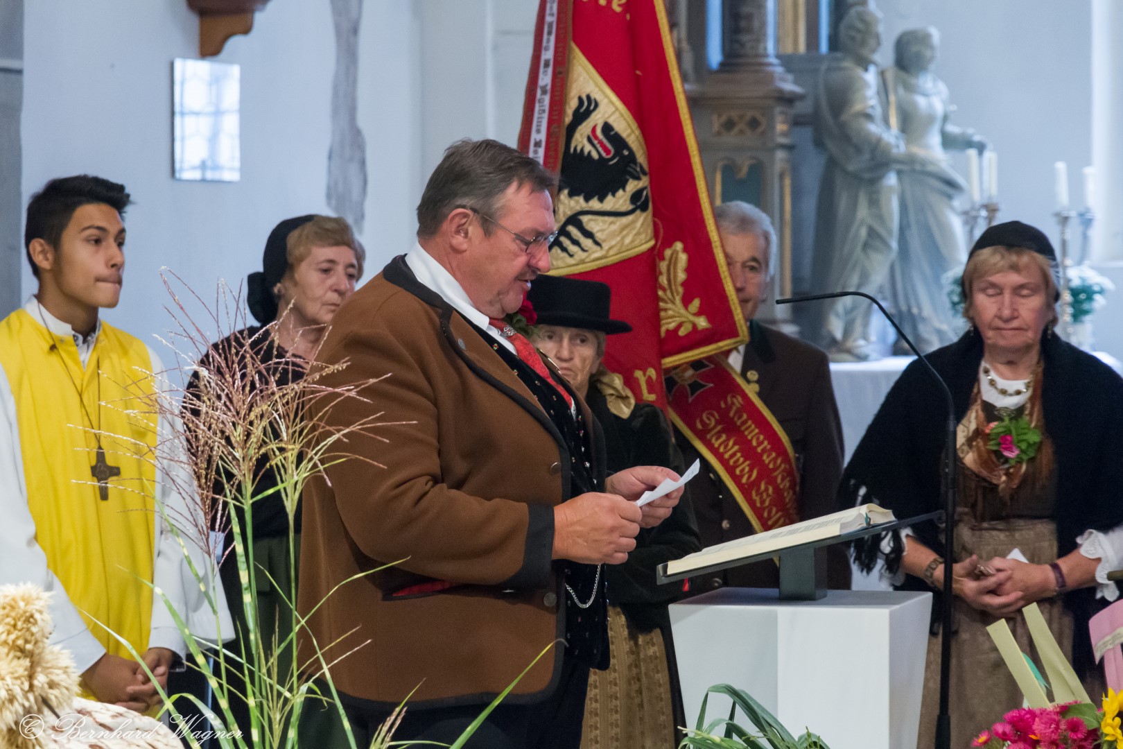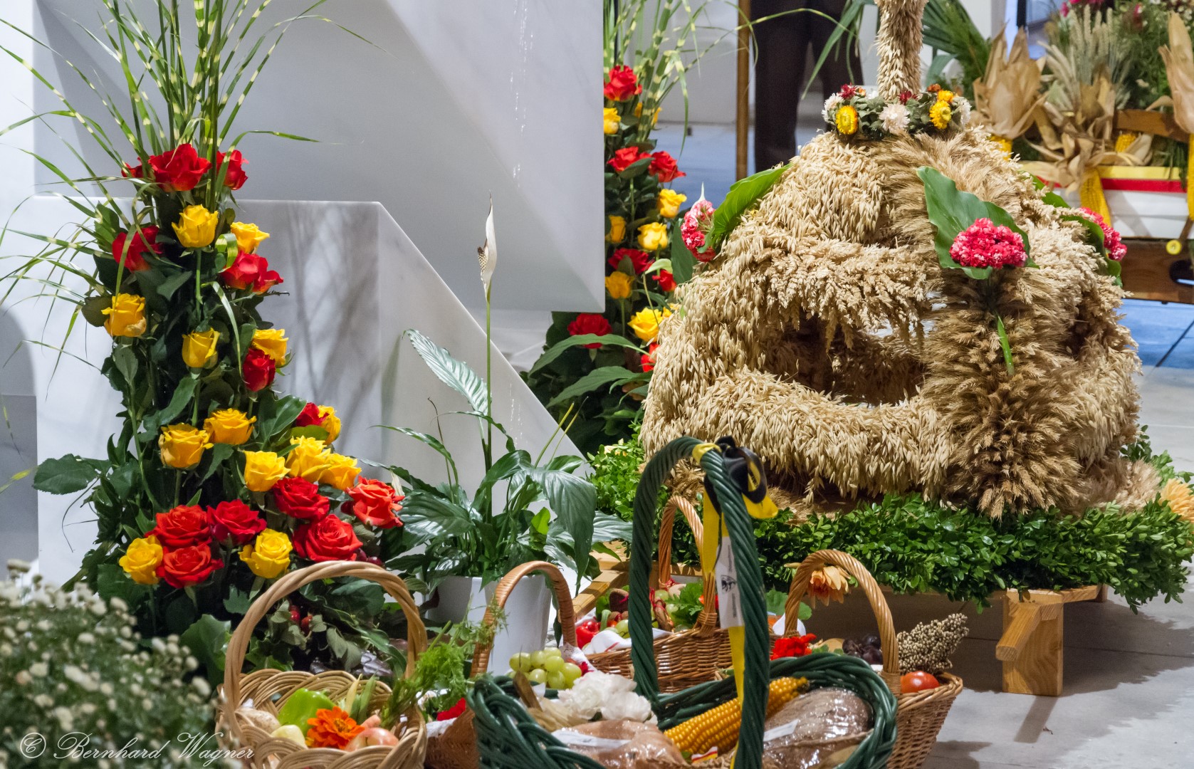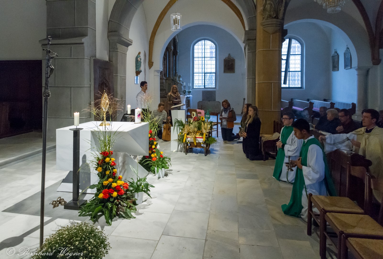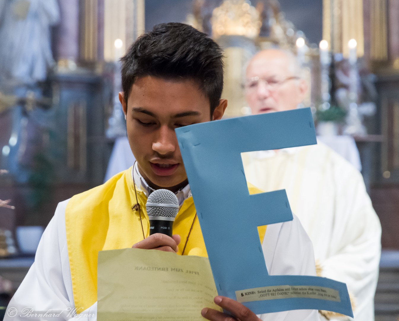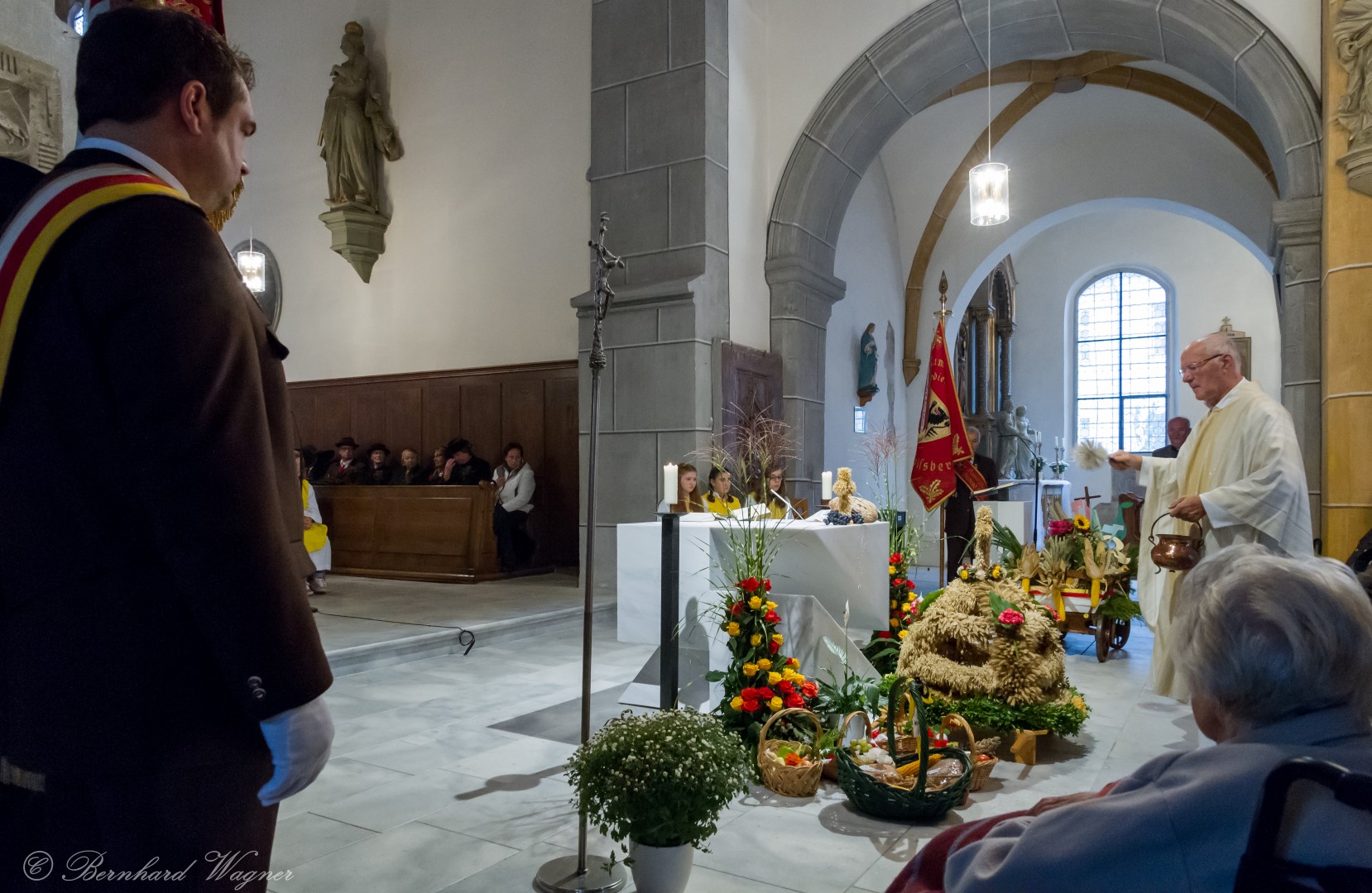 Am ersten Sonntag im Monat, den 2. Oktober, wurde in der Pfarre Wolfsberg das Erntedankfest gefeiert um für die Ernte des Jahres Dank zu sagen. Die Feier sollte eigentlich wie jedes Jahr um 10.00 Uhr am Weiherplatz beginnen wo traditionell die Erntegaben gesegnet werden und schließlich ein Festzug über den Hohen Platz zur Markuskirche stattfindet. Aufgrund regnerischen Wetters musste dieser Teil leider entfallen weshalb die gesamte Feier im Rahmen des Erntedankgottesdienstes, zelebriert von Dechant Mag. Engelbert Hofer, in der Markuskirche stattfand. Im Zuge der Segnung der Erntegaben hielten die anwesenden Ministranten einen ursprünglich für den Weiherplatz vorgesehenen, schönen Textvortrag bei welchem zu jedem aus Papier gefertigten Buchstaben des Wortes Erntedank ein hierzu passender, kurzer Text gelesen wurde.