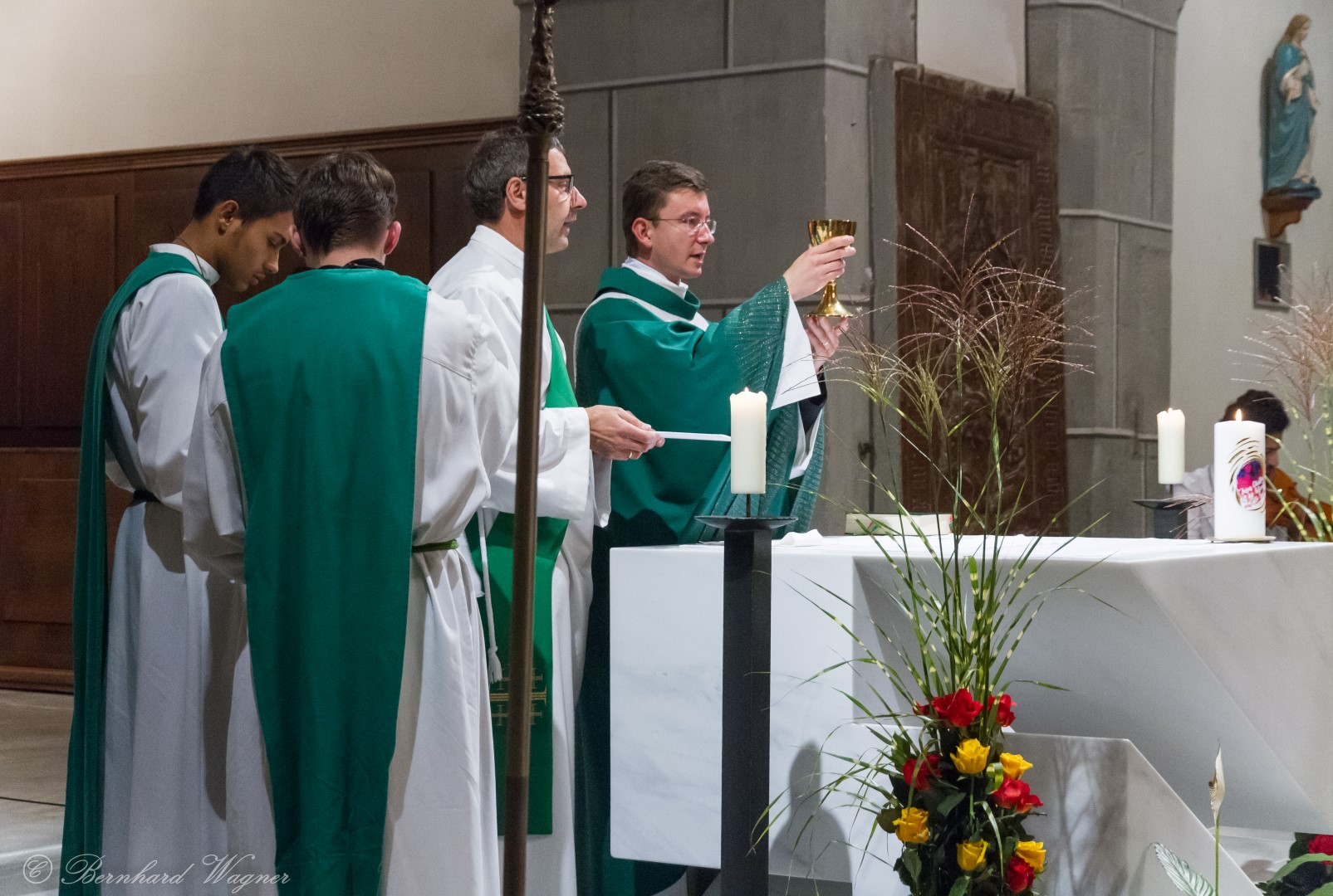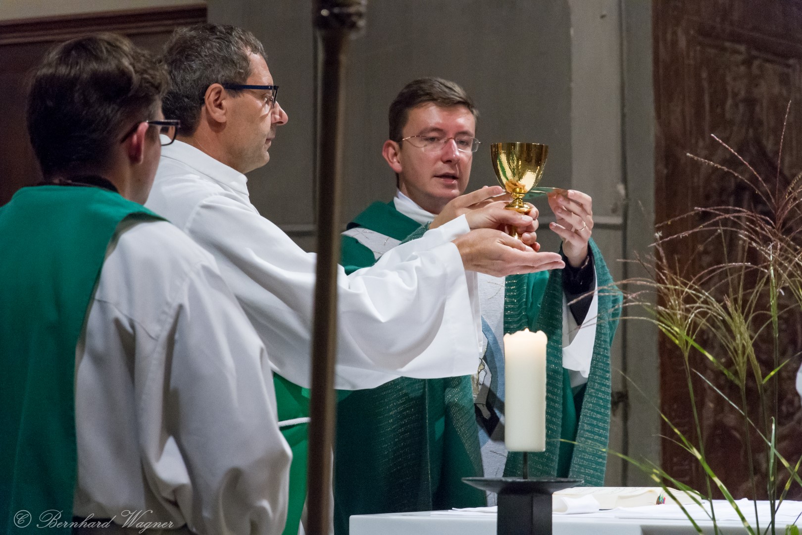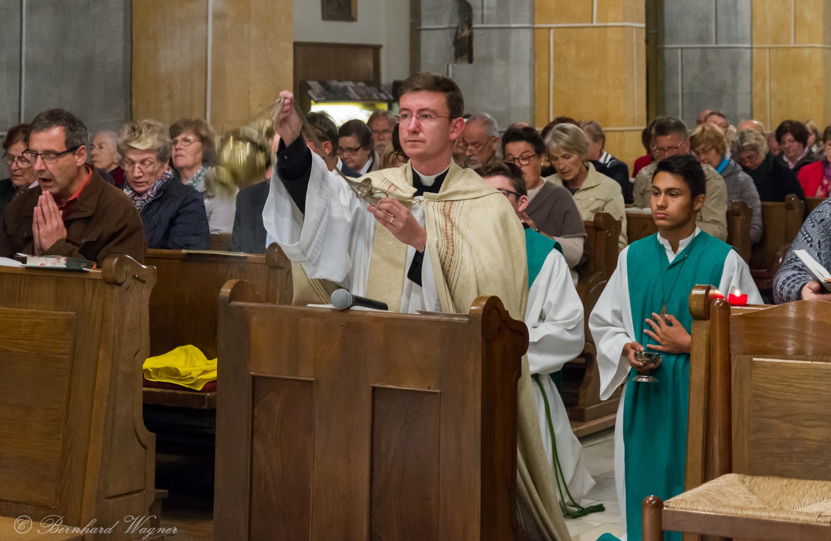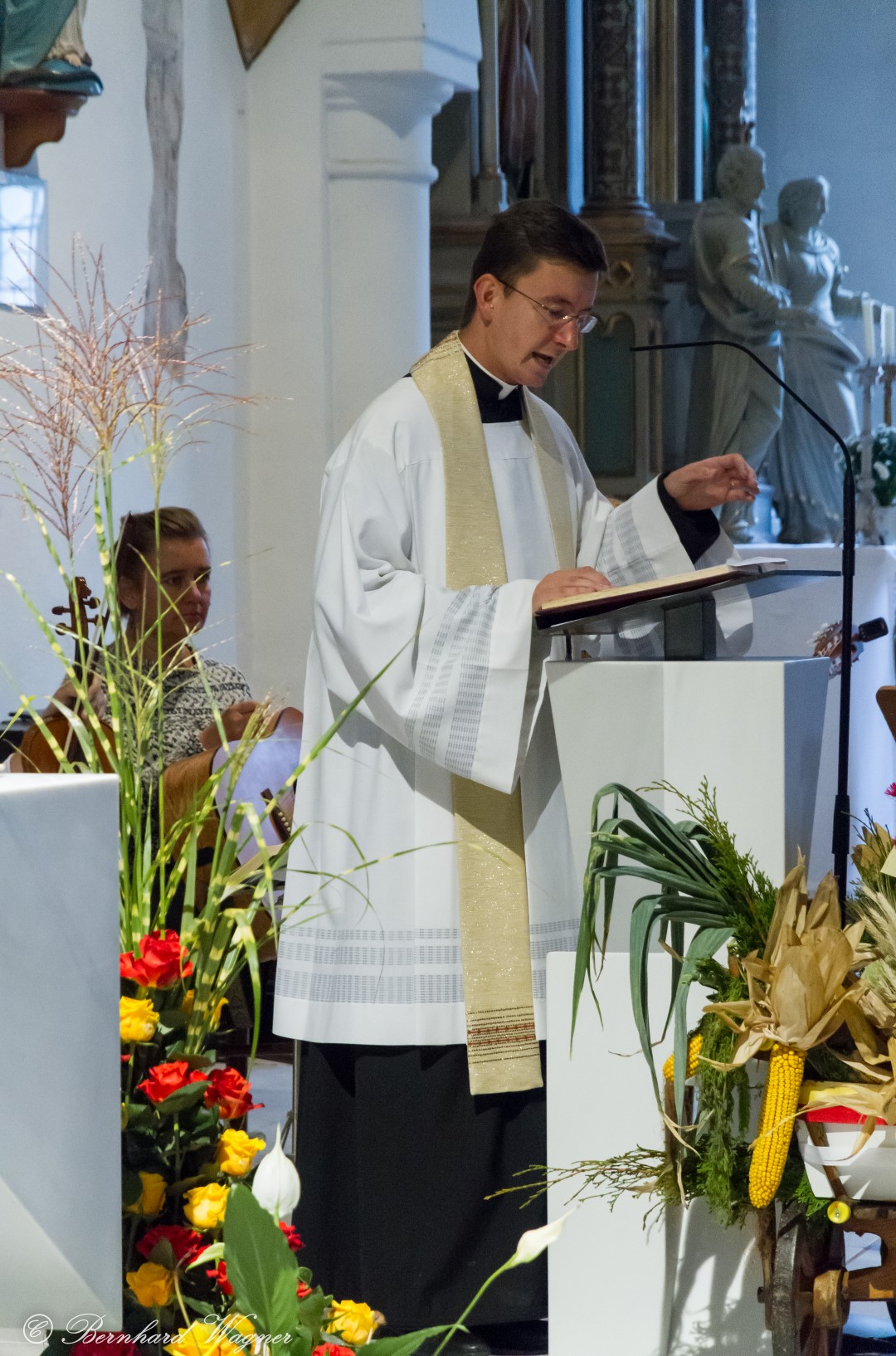 Nach erfolgter Einsetzung des Allerheiligsten im Tabernakel des Hochaltars feierte Kaplan Kranicki mit Diakon Schönhart und den Gläubigen den Abendgottesdienst in welchem die Predigt des Kaplans zum Thema Gottesbild einen besonderen Schwerpunkt bildete. Es ging darin im Wesentlichen um die Frage wer Gott für den Menschen eigentlich ist, nämlich zumeist jemand an den man ausschließlich Gebete richtet nur in Erwartung einer mehr oder weniger großen Hilfeleistung, und wer er eigentlich sein sollte, nämlich jemand dem man beispielsweise in Liebe begegnet.