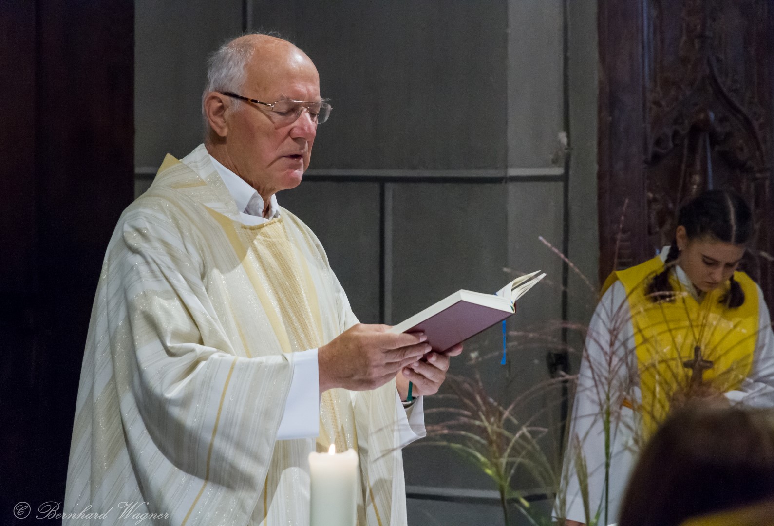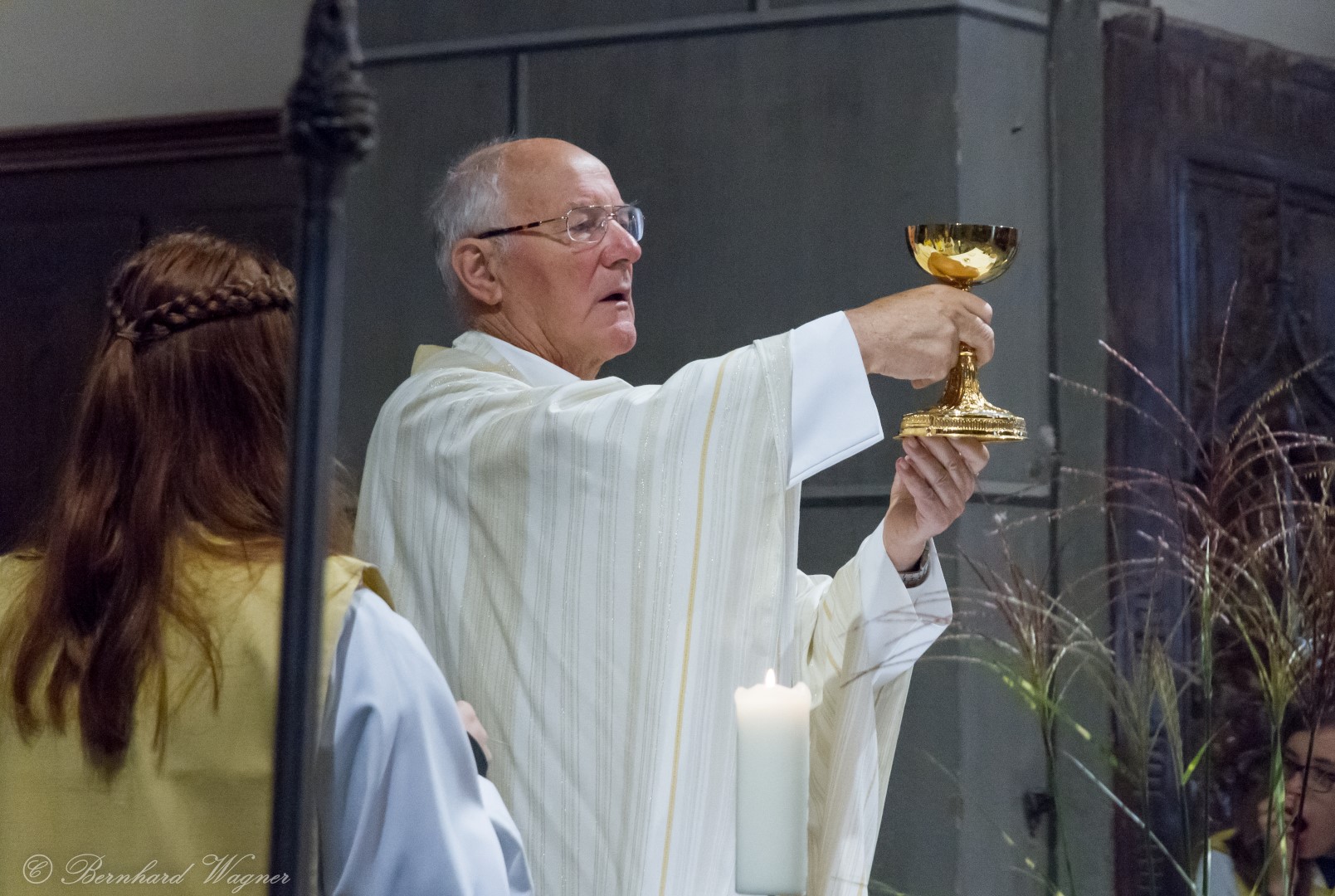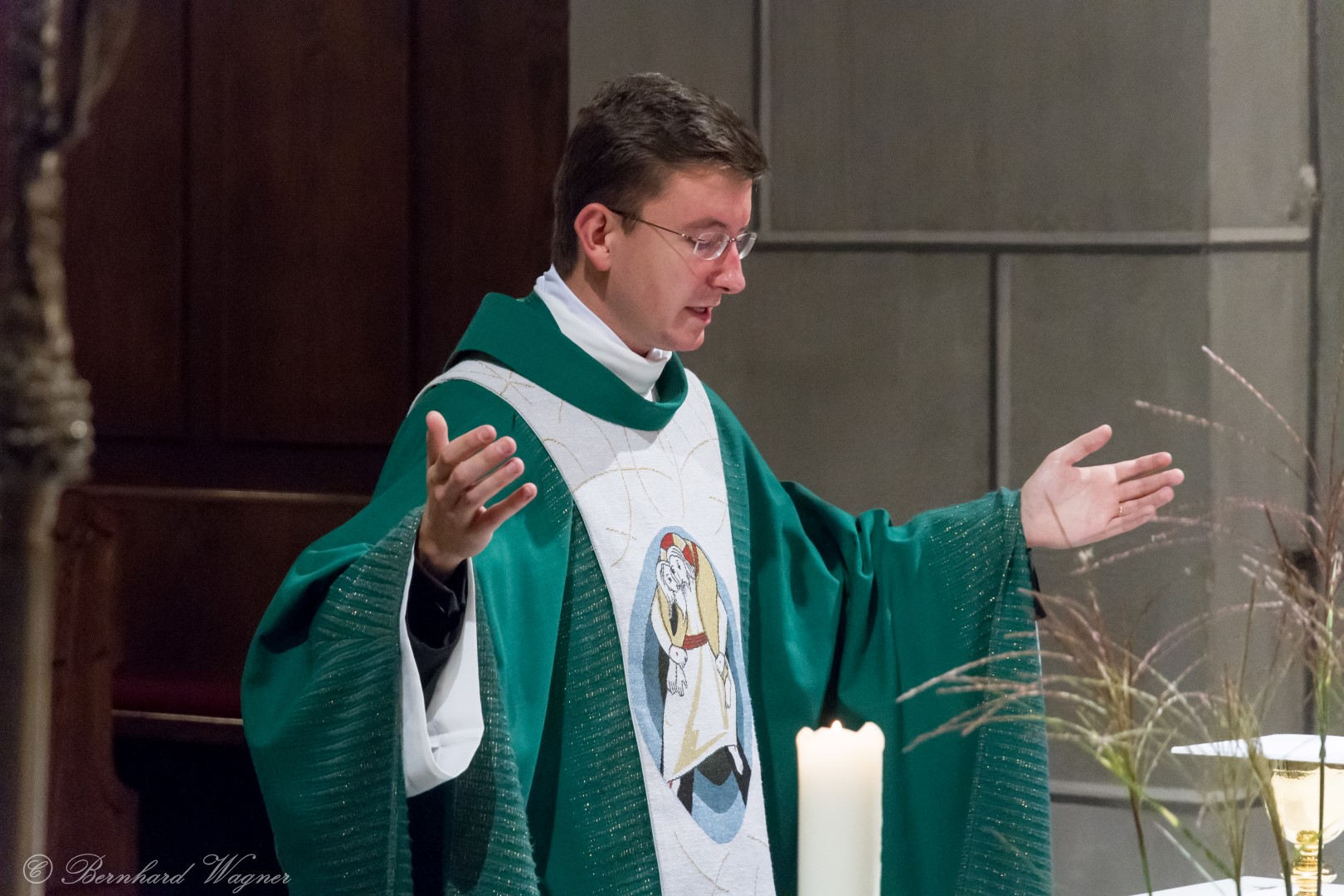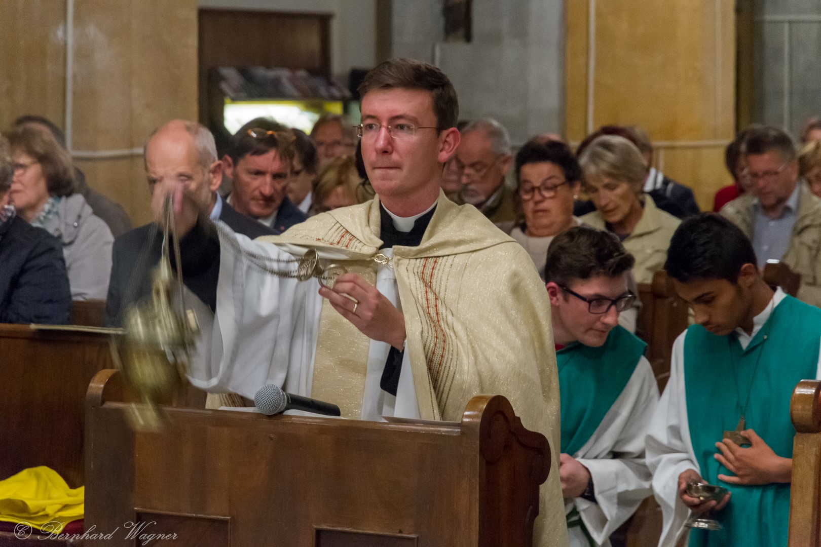 Nach erfolgter Einsetzung des Allerheiligsten im Tabernakel des Hochaltars feierte Kaplan Kranicki mit Diakon Schönhart und den Gläubigen den Abendgottesdienst in welchem die Predigt des Kaplans zum Thema Gottesbild einen besonderen Schwerpunkt bildete. Es ging darin im Wesentlichen um die Frage wer Gott für den Menschen eigentlich ist, nämlich zumeist jemand an den man ausschließlich Gebete richtet nur in Erwartung einer mehr oder weniger großen Hilfeleistung, und wer er eigentlich sein sollte, nämlich jemand dem man beispielsweise in Liebe begegnet.
