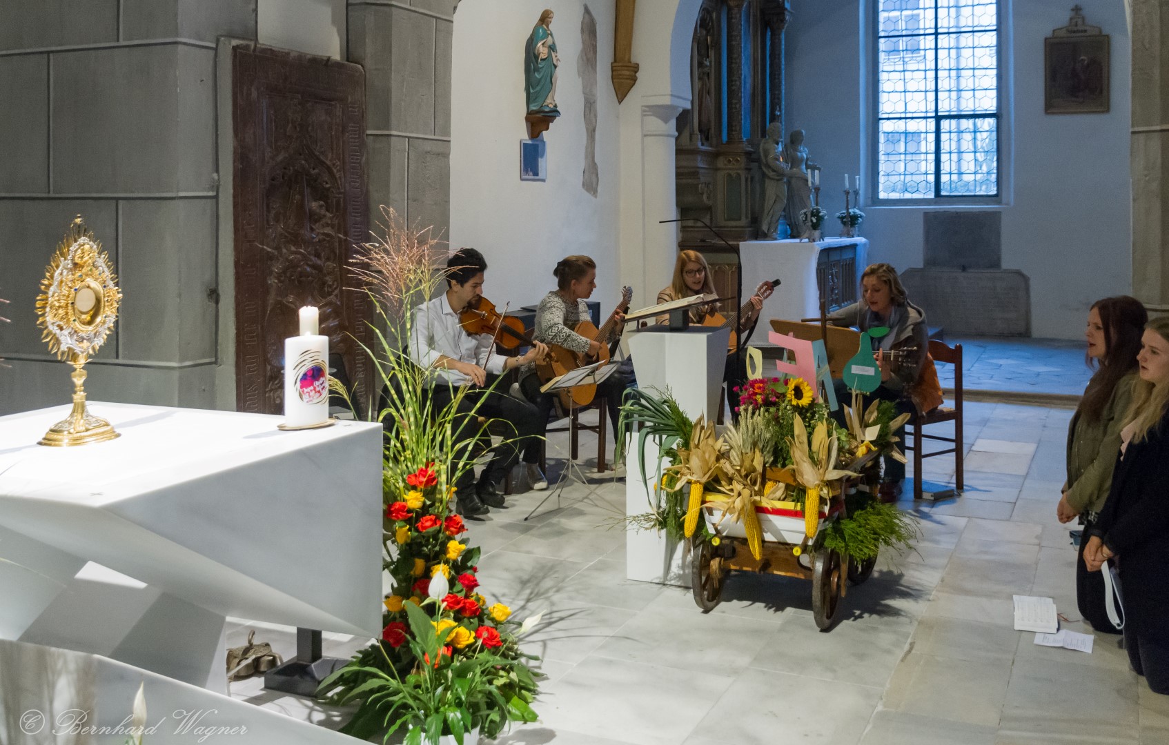Erwähnte Sing- und Spielgruppe übernahm auch die Gestaltung der Messfeier. Beim Auszug hörte man Orgelklänge, wie schon beim letzten Abend der Barmherzigkeit am 4. September ein Werk des Barockkomponisten Arcangelo Corelli.