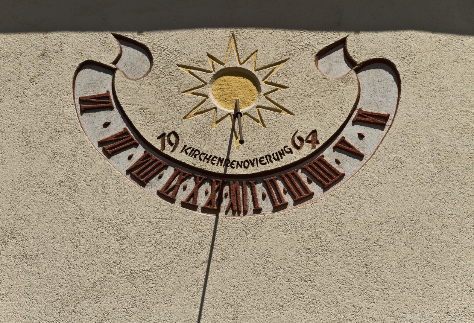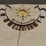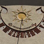 Vertikalsonnenuhr mit Sonnensymbol (© Herr Mag. Bernhard Wagner).