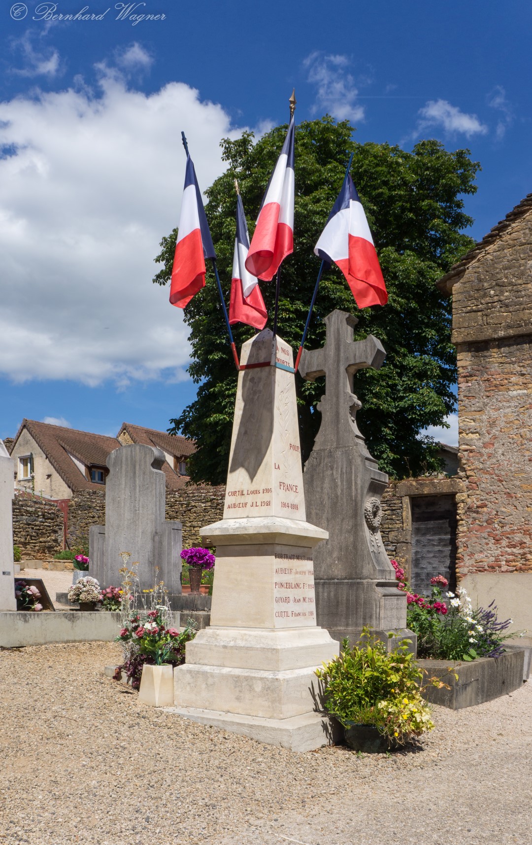 Gefallenendenkmal 1. Weltkrieg im Friedhof der Romanischen Dorfkirche (Sainte-Marie-Madeleine – Hl. Maria Magdalena) von Taizé – 15. Juli (© Herr Mag. Bernhard Wagner).