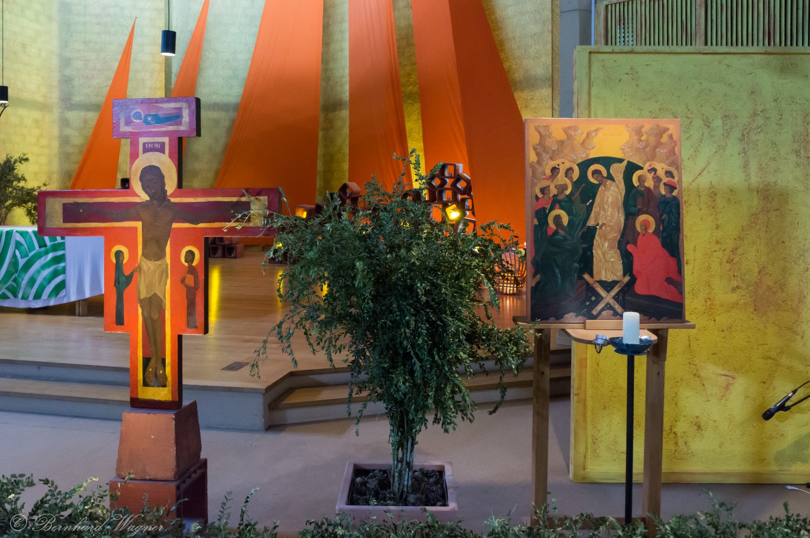 Taizé-Kreuz (Kreuzikone) in der Versöhnungskirche – 12. Juli (© Herr Mag. Bernhard Wagner).