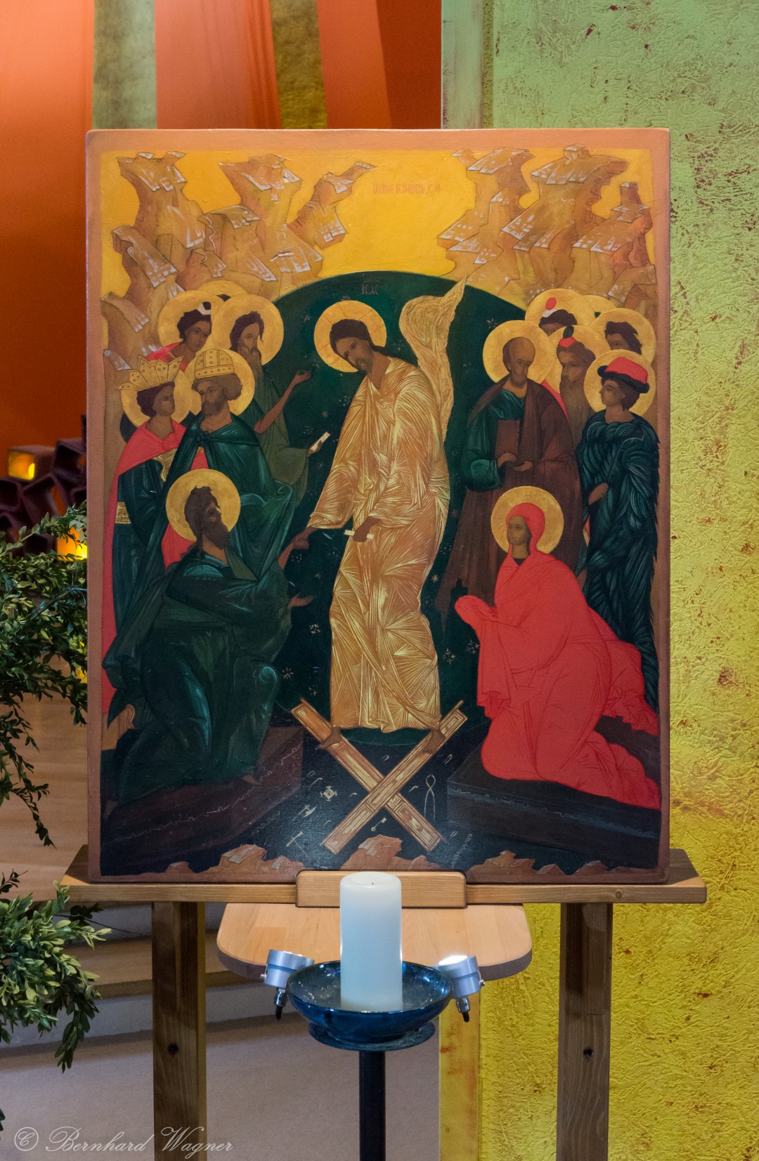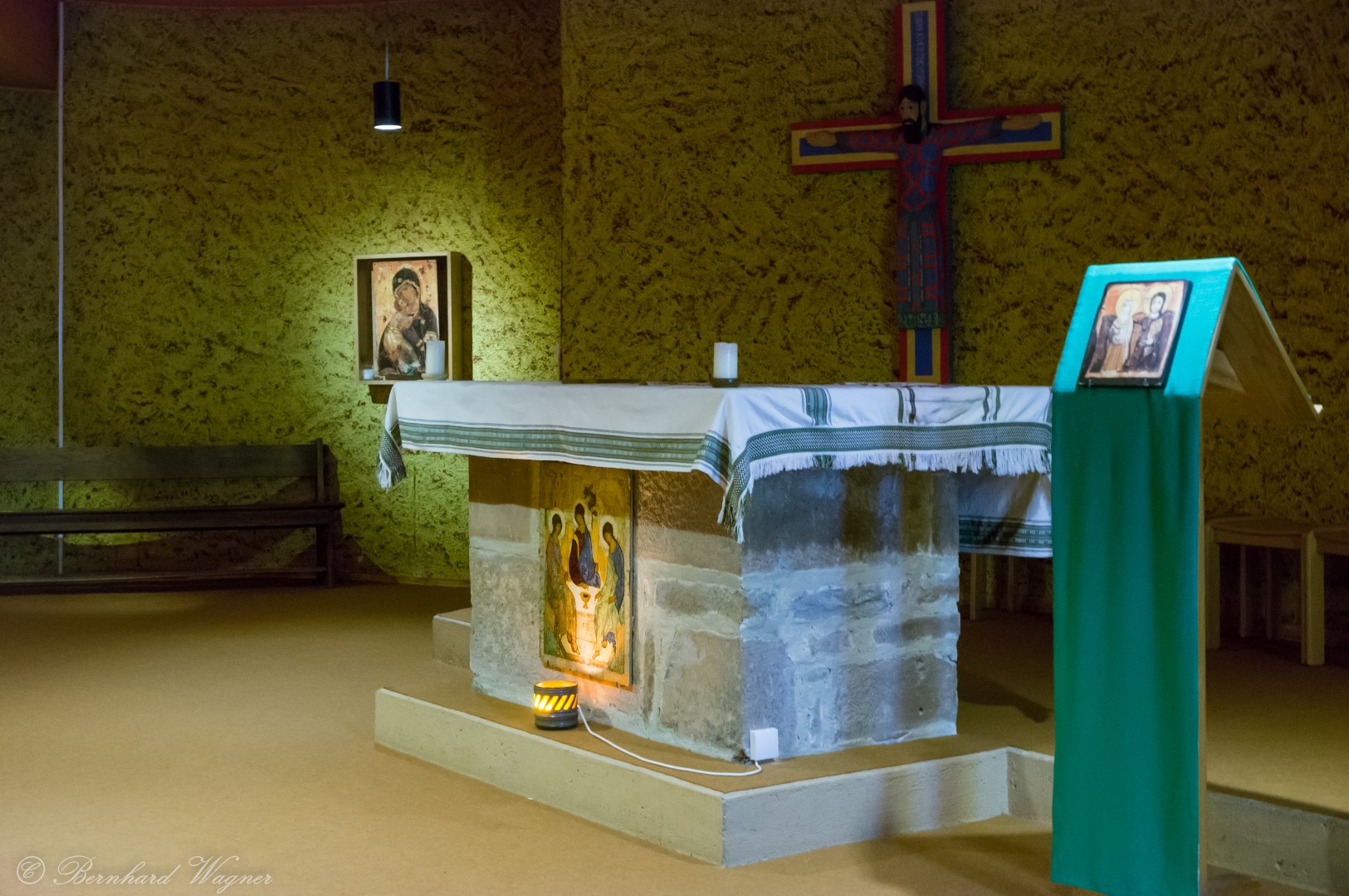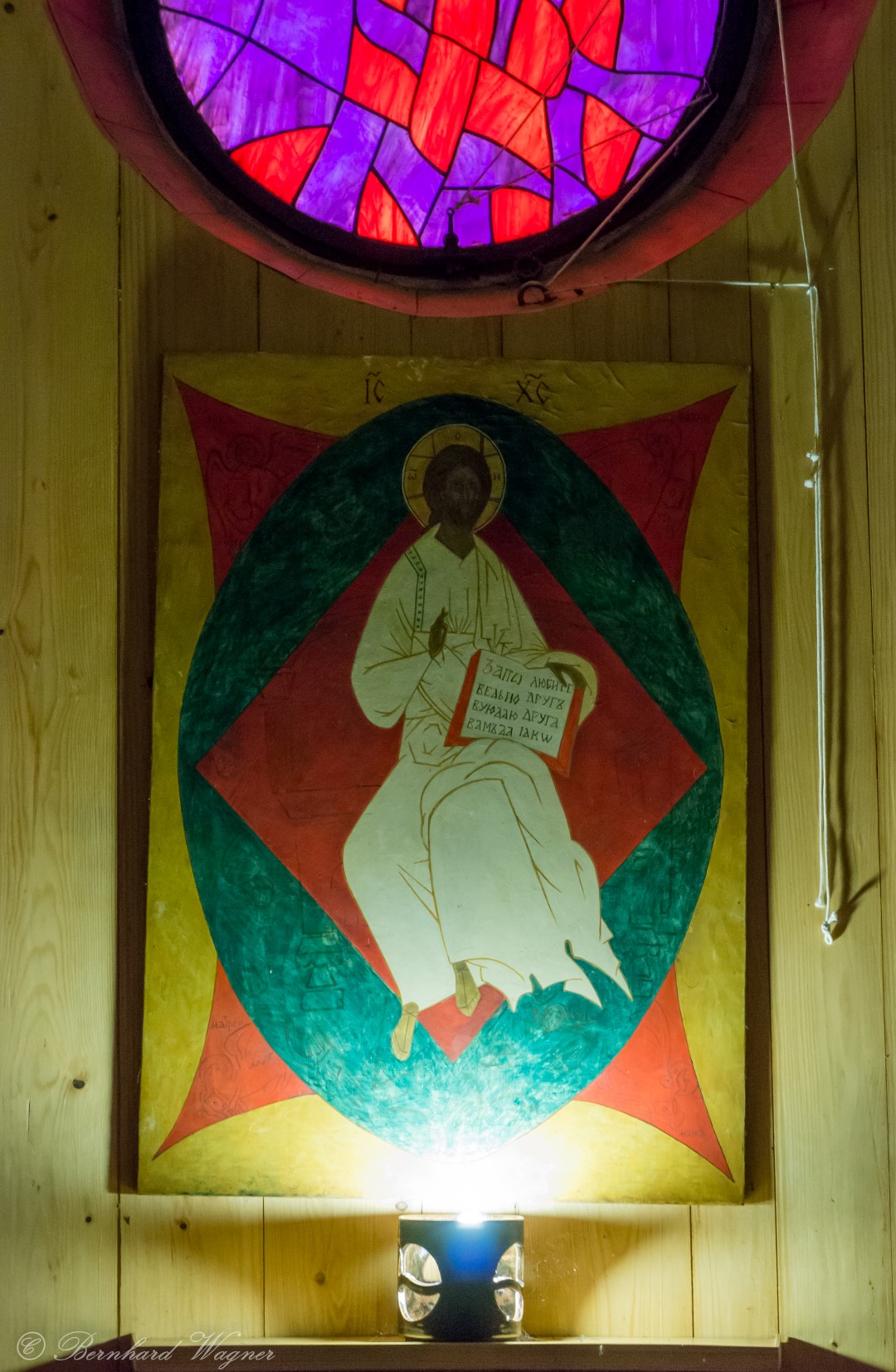Taizé-Kreuz (Kreuzikone) und Bildnis in der Versöhnungskirche – 12. Juli (© Herr Mag. Bernhard Wagner).