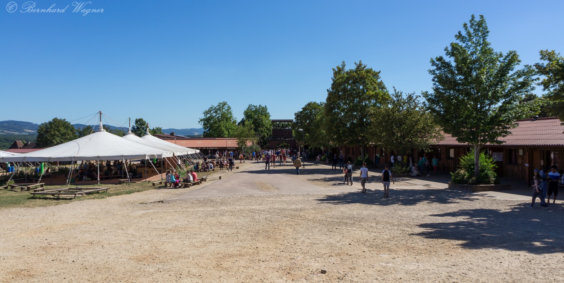 Am Silence-Areal, Morgen, Blick zu den Taizé-Zelten – 17. Juli (© Herr Mag. Bernhard Wagner).
