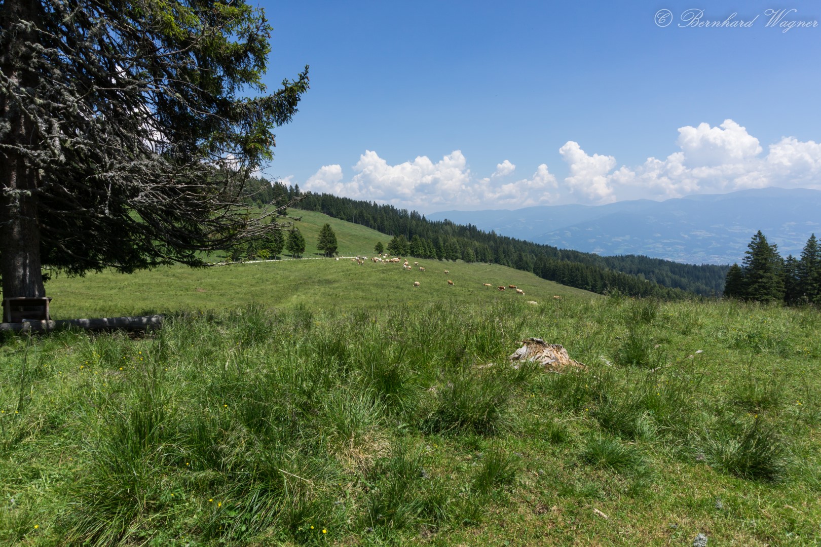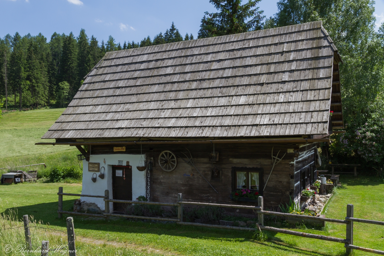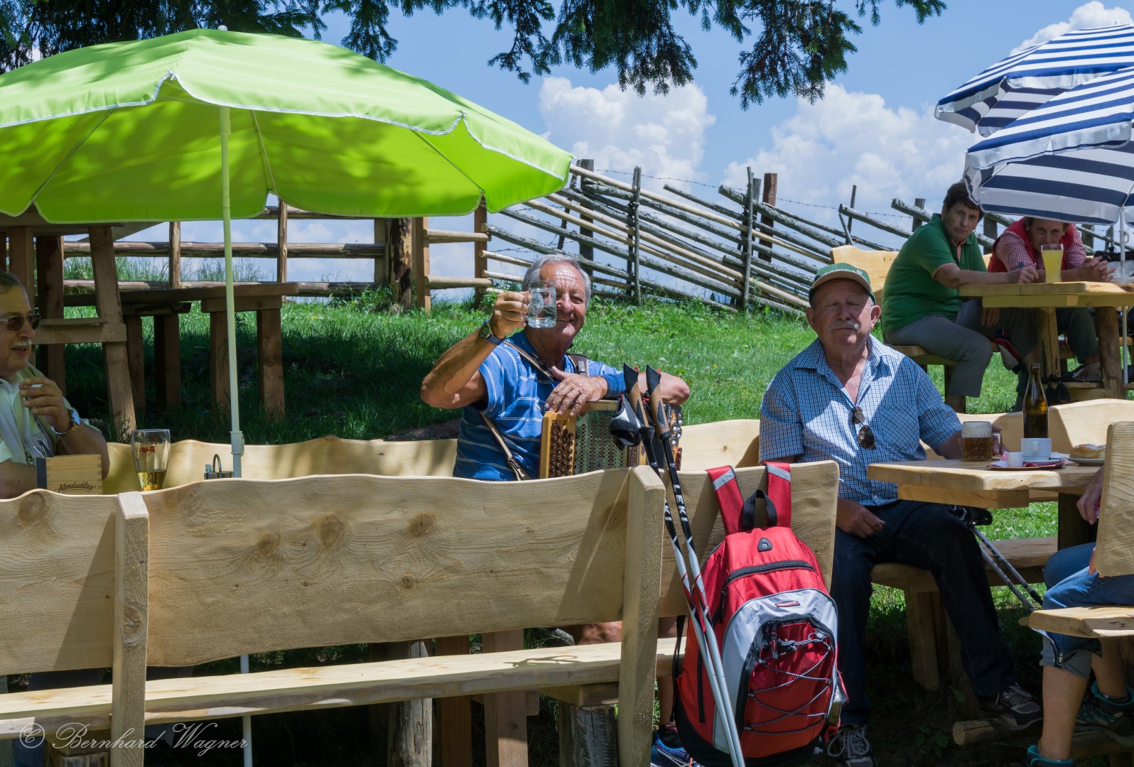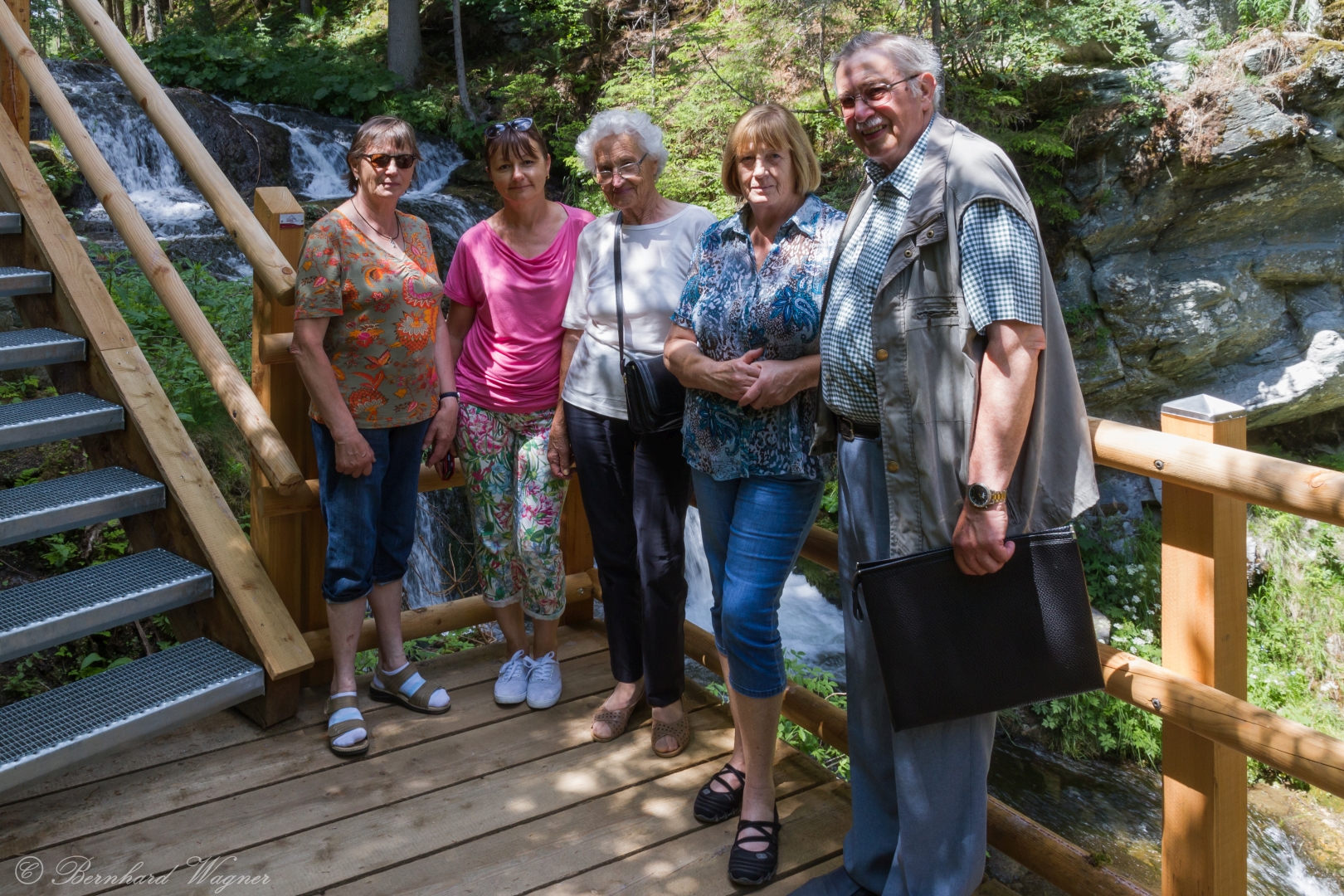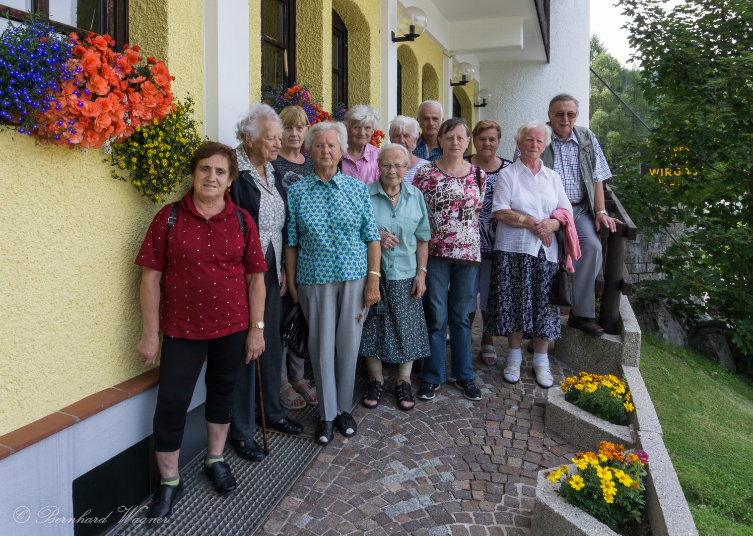 Das Seniorenteam gemeinsam mit Gruppenleiter Herrn Kurt Weitlauer (rechts außen) beim Sommerausflug ins Bodental am 20. Juli 2017 vor dem Familienhof Sereinig