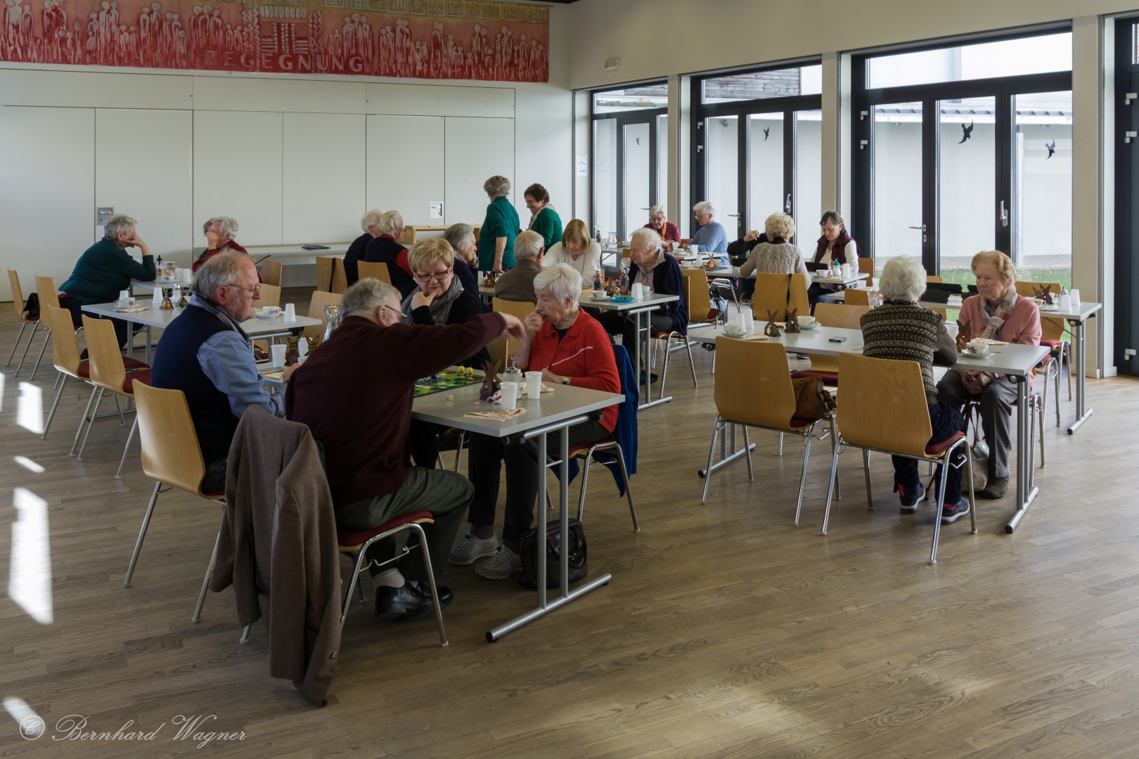 Zur Seniorengruppe zählen zwischen 25 und 30 Personen, die regelmäßig und gerne kommen. Die Altersspanne reicht von 70 Jahren bis über 90. Wir sind eine nette, herzliche Gemeinschaft, in der sich alle recht wohl fühlen.