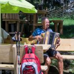 Das Seniorenteam gemeinsam mit Gruppenleiter Herrn Kurt Weitlauer (ganz rechts) bei der Fahrt nach Zeutschach in der Steiermark vor dem Gasthof Fischerwirt am 13. Juni 2019 (© Herr Mag. Bernhard Wagner).
