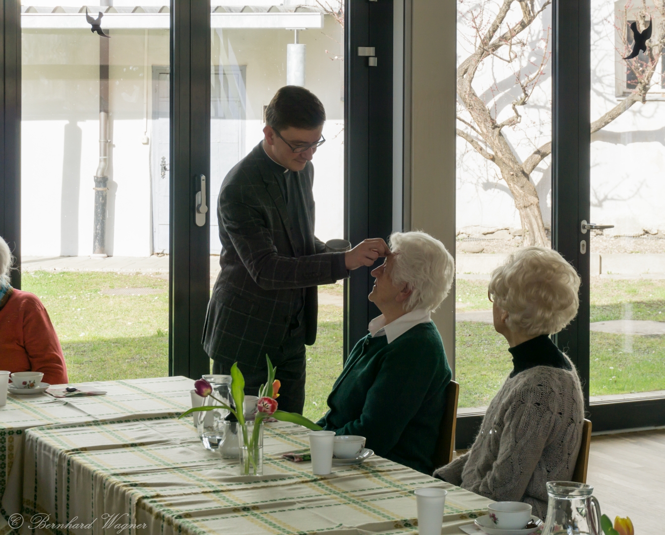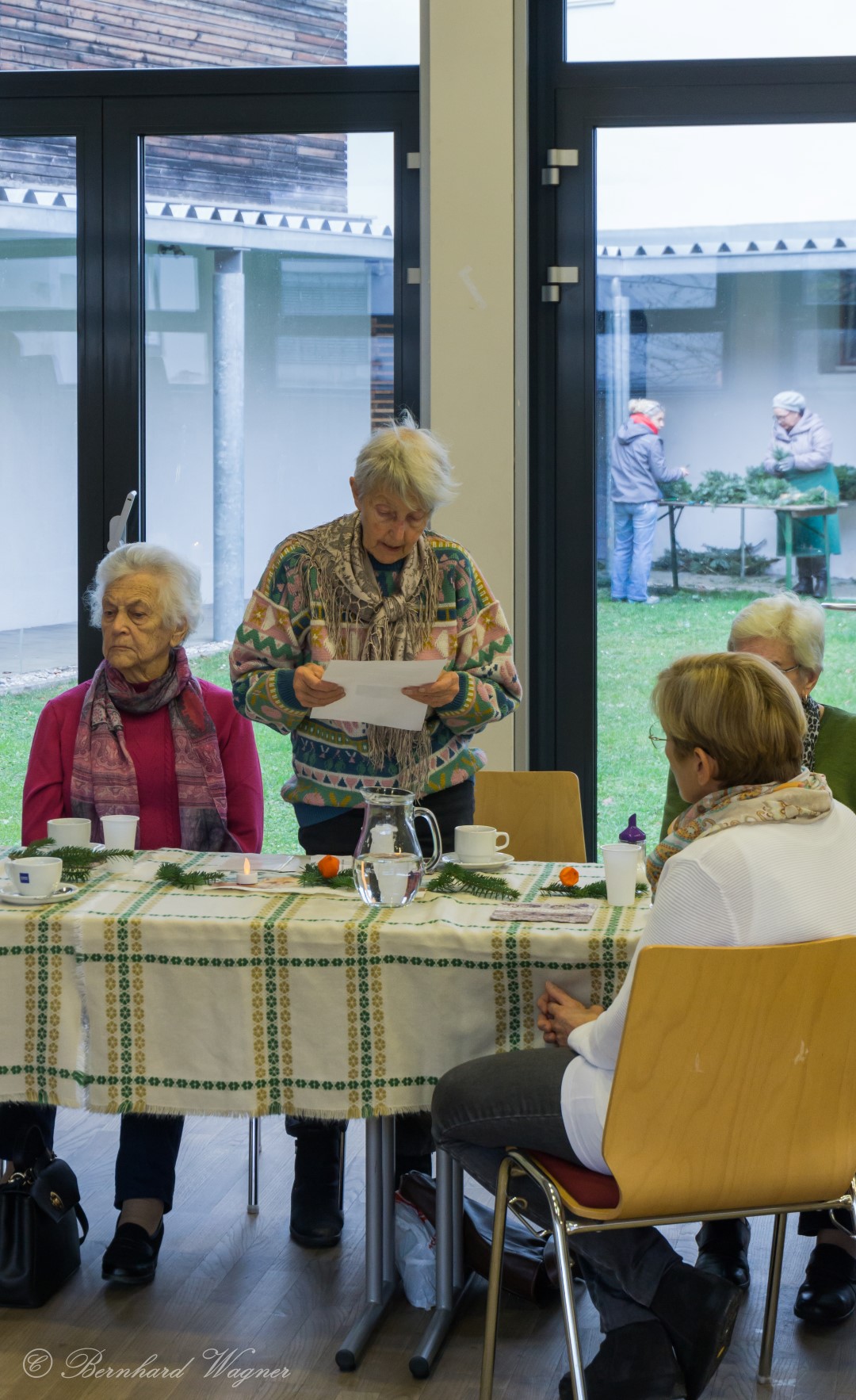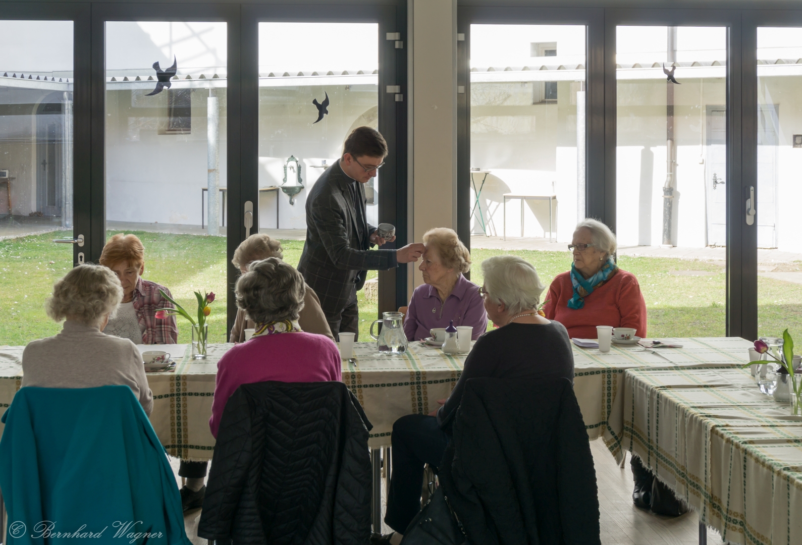 BK: Falls ich einmal krank werde, dann springt Frau Reiterer für mich ein und bei den Seniorentreffen helfen drei bis vier Frauen in Küche und Refektorium. Selbstgebackenen Kuchen, Kaffee und Zucker bringt die eine oder andere mit. Für die Deckung der Unkosten gibt es auch das Kaffeekörberl.