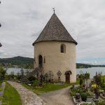 Das Seniorenteam gemeinsam mit Gruppenleiter Herrn Kurt Weitlauer (ganz hinten) bei der Wallfahrt nach Maria Wörth vor dem Portal der Pfarrkirche am 16. Mai 2019